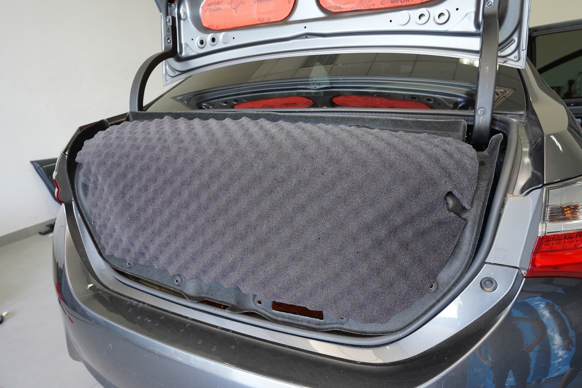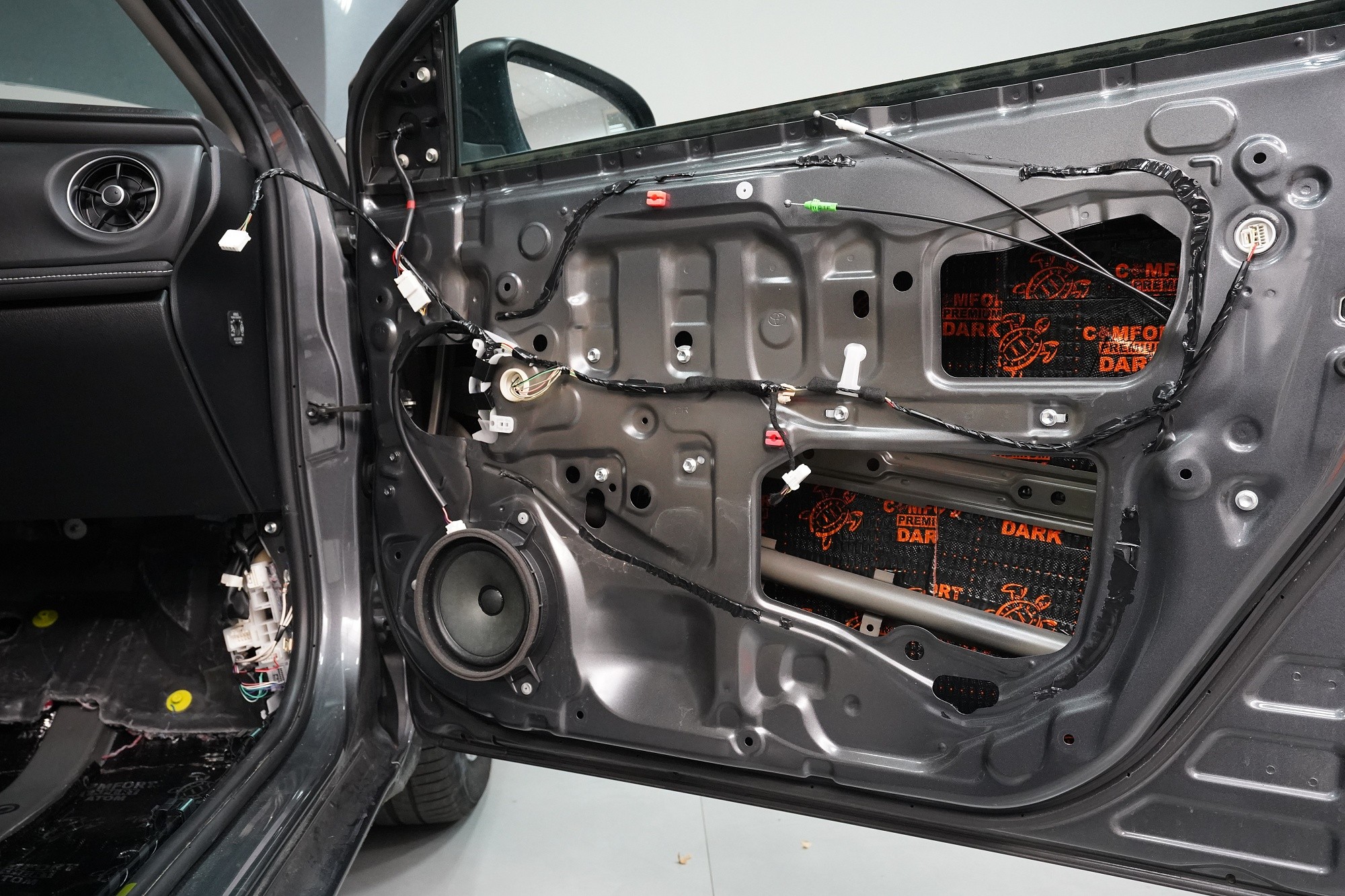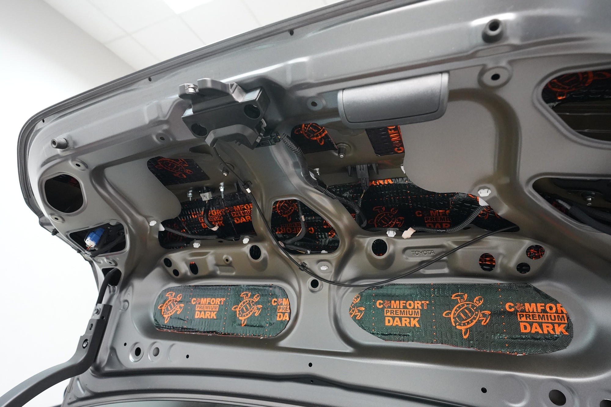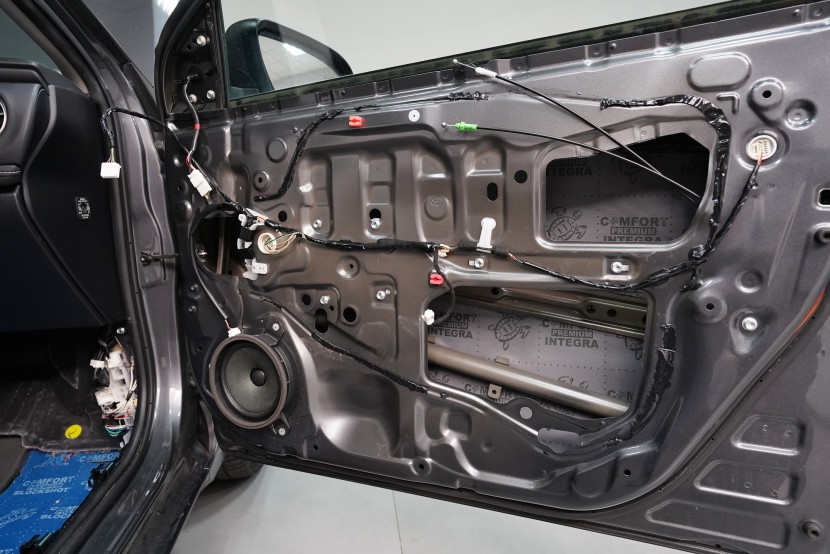 Шумоизолация на автомобил Toyota Corolla. Единадесетото поколение на този популярен модел страда от познатите проблеми на тази японска автомобилна марка, сред които основно са недостатъчната защита срещу вибрации и практически нулева звукова изолация. Това се проявява като силен шум от гуми, вода и камъчета в калниците, шум от вятър при високи скорости, но и скърцане на пластмасите вследствие на по-твърдо окачване. Всичко това намалява комфортa при шофиране на този автомобил, но ние имаме отлична рецепта как да предотвратим това и да класираме Toyota Corolla по отношение на звуковата изолация в премиум категорията. След нашата шумоизолация ще изчезнат вибрациите от двигателя, трансмисията или окачването и също така въздушно пренесения шум с различни честоти от областта на пода, предните и задните калници и разбира се и вратите и задната част на автомобила. С клиента се договорихме за нашия най-търсен пакет шумоизолация Premium. Конкретно ще се фокусираме върху предни, задни и трети (петите) врати, пода, багажното отделение, предни и задни калници от страната на автомобила и капака. За шумоизолацията използваме първокласни анти-вибрационни и звукоизолиращи материали Comfortmat, включително няколко наскоро публикувани новинки. На инсталацията работят едновременно трима наши техници, които завършват монтажа в рамките на 1 работен ден. Всички важни информация ще намерите в нашия обширен фоторепортаж.