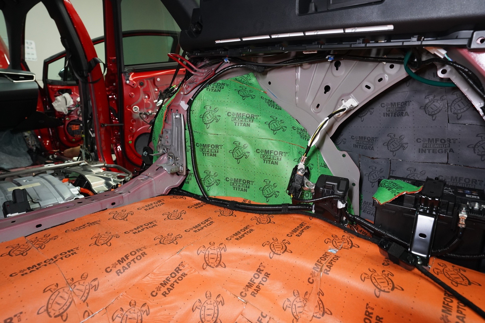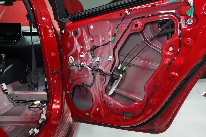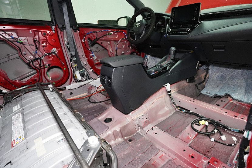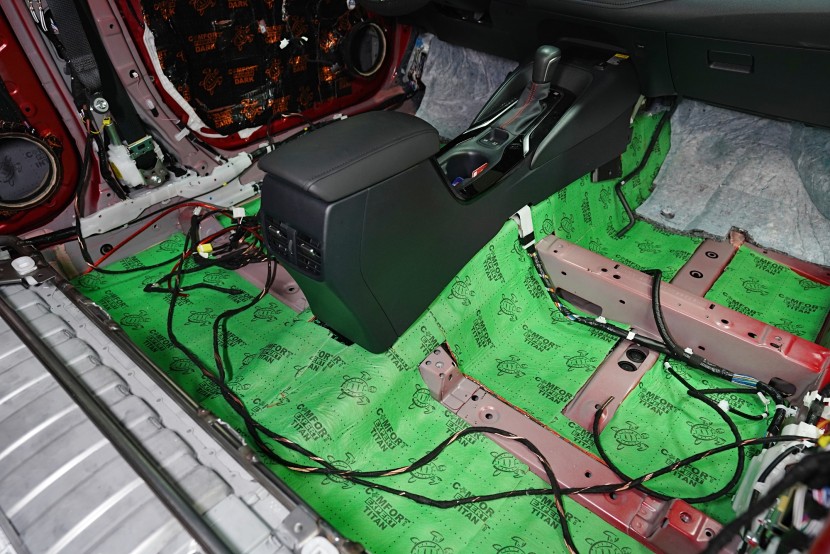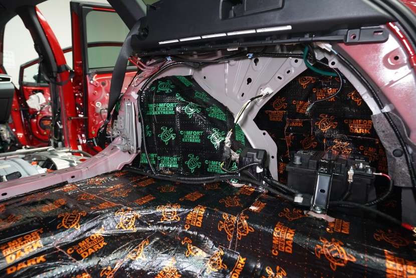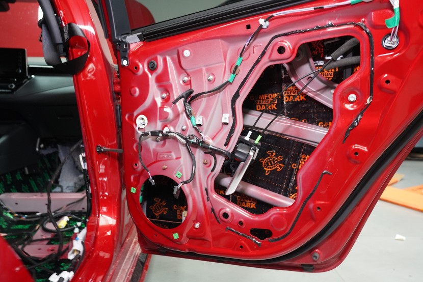Шумоизолация на Toyota Corolla от последното поколение. Вече дванадесето издание на този изключително успешен модел и, според нашите очаквания, фабричната звукова изолация не се е променила. Практически нулевата звукоизолация се проявява с явен шум от гумите, вода и камъчета в арките, вятърен шум при високи скорости, както и скърцане на пластмасите в резултат на по-твърдо окачване. Всичко това намалява комфорта при шофиране и затова собственикът се обърна към нас. След нашата шумоизолация ще изчезнат вибрациите от двигателя, скоростната кутия или окачването, както и въздушният шум с различни честоти от зоната на пода, предните и задните арки и разбира се от вратите и задната част на автомобила. С клиента се договорихме за нашия подобрен пакет шумоизолация Premium Plus, в който прилагаме висококачествени материали Comfortmat предимно от най-високата серия Expert. Благодарение на това сме в състояние да постигнем намаляване на шума над 4,5 dB при магистрална скорост, което означава повече от 2,5 пъти по-нисък шум в купето в сравнение с преди прилагането на шумоизолацията. Конкретно се фокусирахме върху предните, задните и петите врати, полето, багажника, предните и задните арки от страната на автомобила и капака. Автомобилът беше и озвучен. Подменихме фабричните говорители с акустично напреднали компоненти на италианския производител Audison, които свързахме към четириканален усилвател с DSP процесор от същия производител. С помощта на калибриран микрофон измерихме всички недостатъци и препятствия на автомобила и прецизно настроихме пространствената корекция на еквалайзера за всеки говорител в автомобила. След това настроихме времевите корекции, нивата, честотните филтри и фазите — всичко това за осигуряване на максимално вярно звучене. За инсталацията работят едновременно четирима наши техници, които успяват монтажа с малък извънреден труд в рамките на 1 работен ден. Ако се интересувате само от шумоизолация, цената беше 32 896 Kč и работата отне 26 часа. Всички важни информации ще намерите в нашия обширен фоторепортаж.