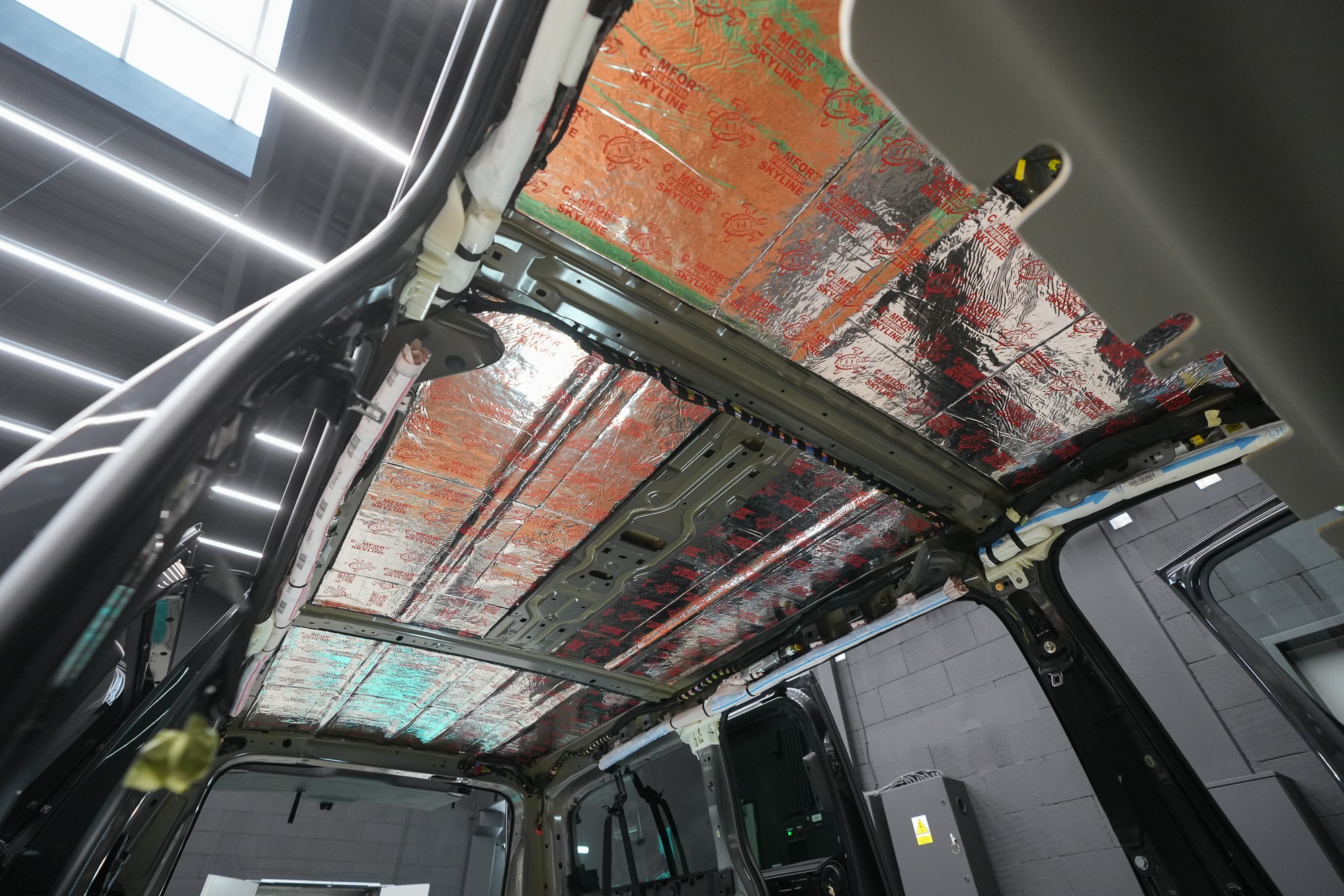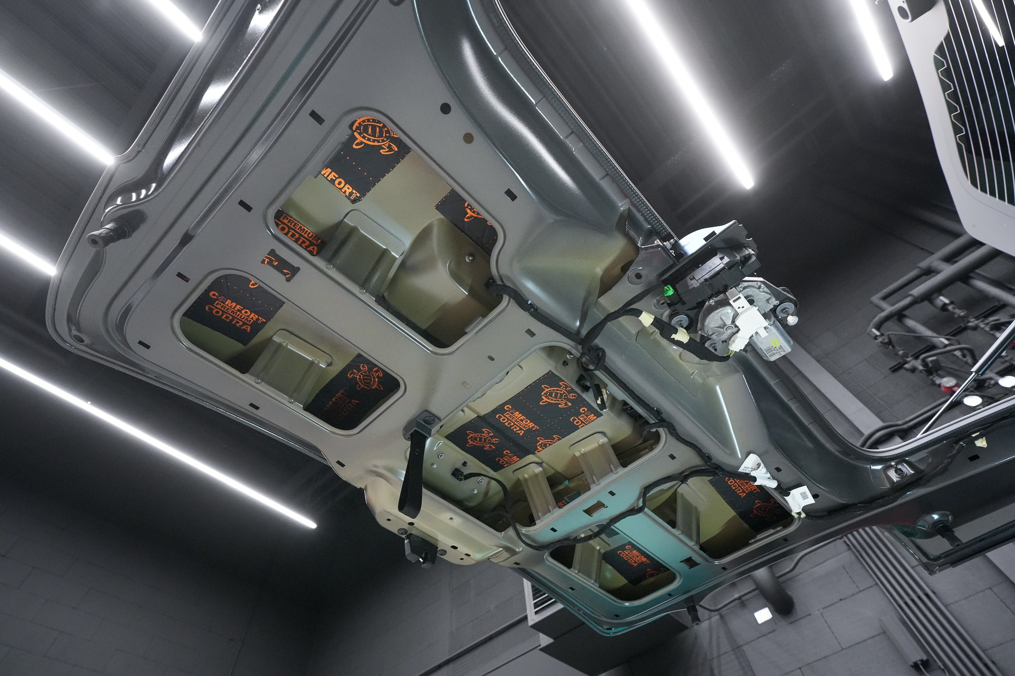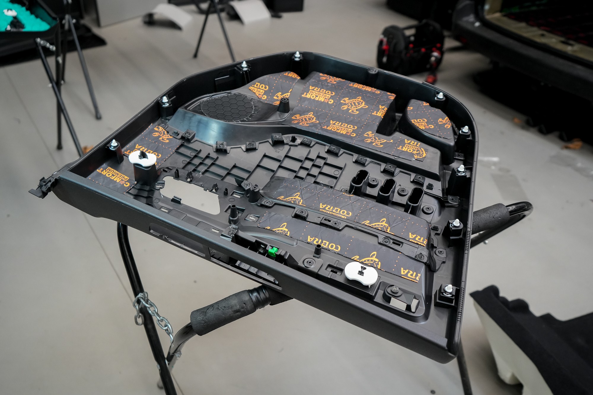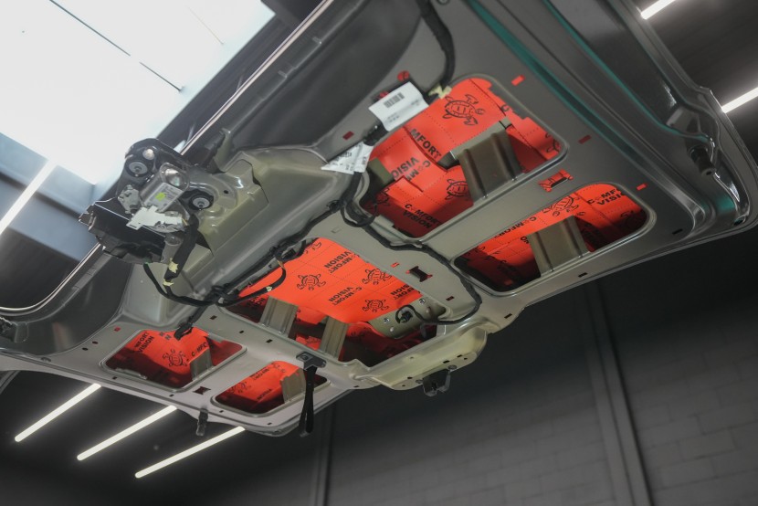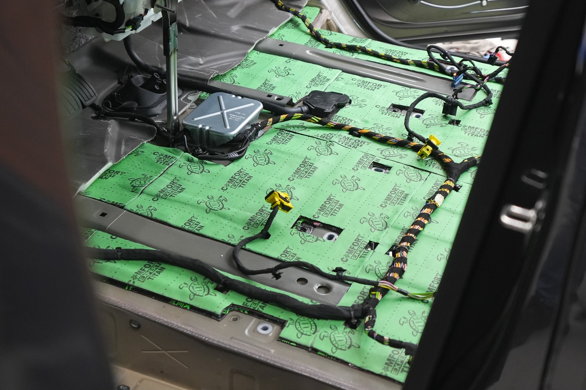 Собственикът на автомобила се реши на пълна шумоизолация в рамките на нашия пакет Expert Plus, който наскоро беше модернизиран. Ново във внедряването е използването на водещия звукоизолационен материал Comfortmat Titan, приложен предимно върху пода и арките на колелата – т.е. части от каросерията, които са най-силно подложени на шумово натоварване. Този материал може да намали шума до 38 dB, което го поставя сред най-ефективните решения днес. Двуслойната конструкция, комбинираща материали от професионалната серия Expert, гарантира максимален акустичен ефект и дългосрочна издръжливост.
