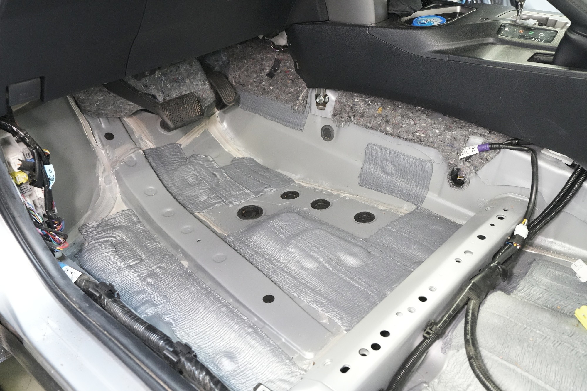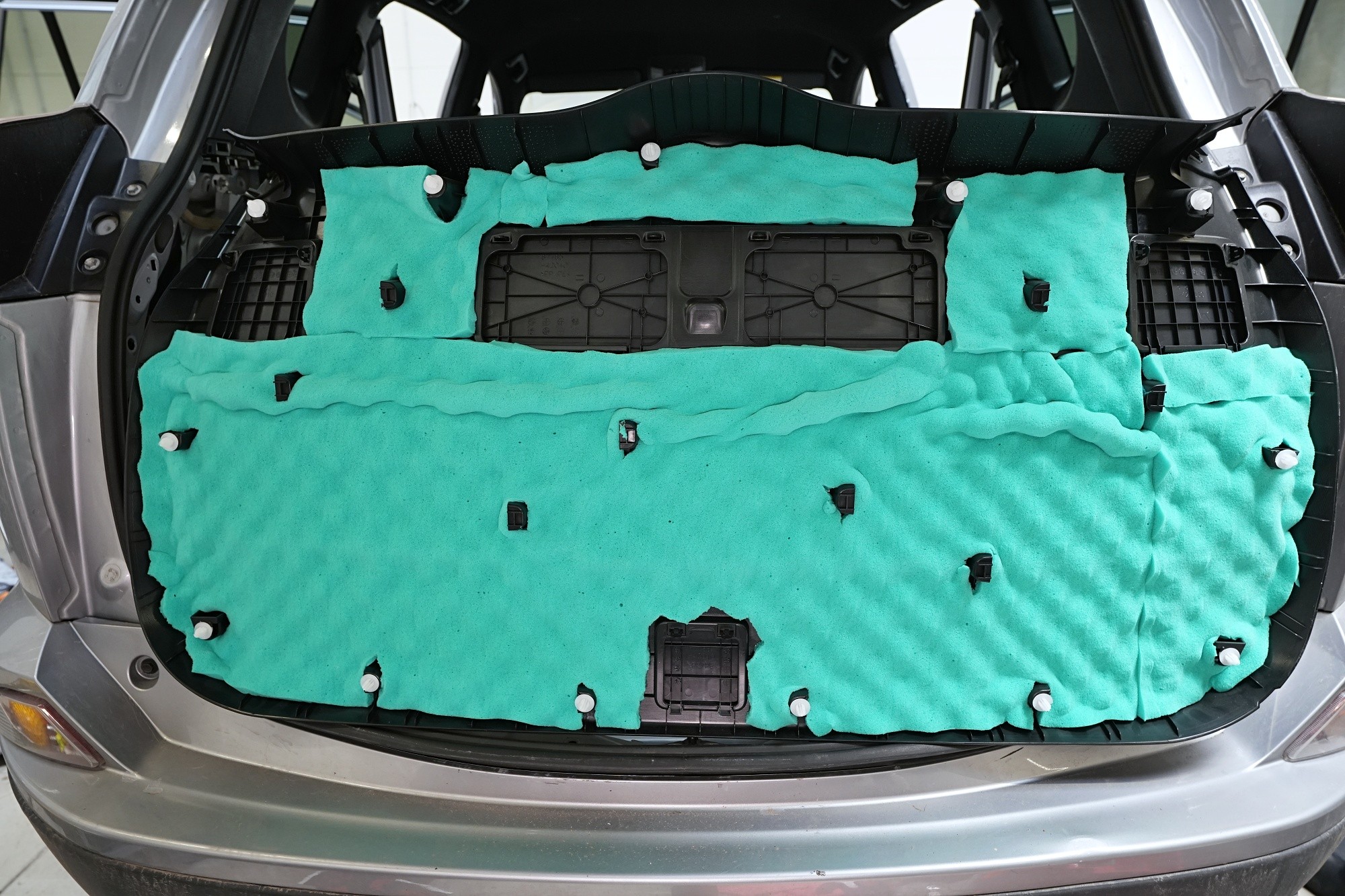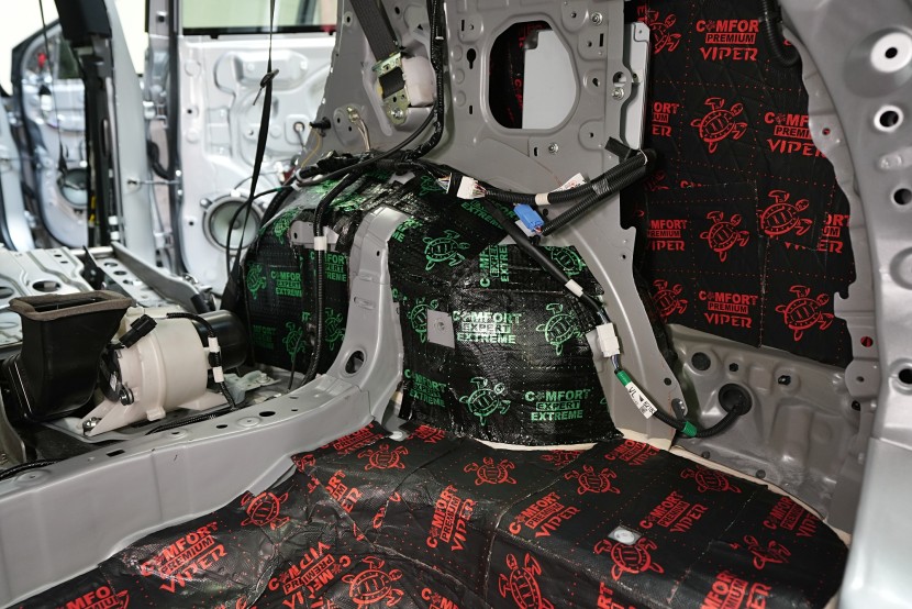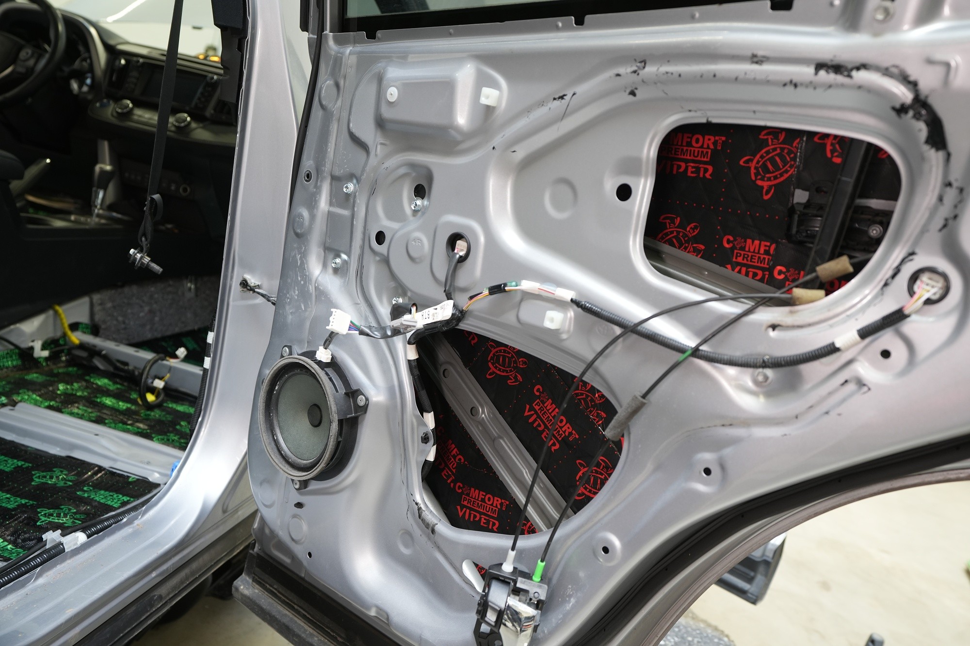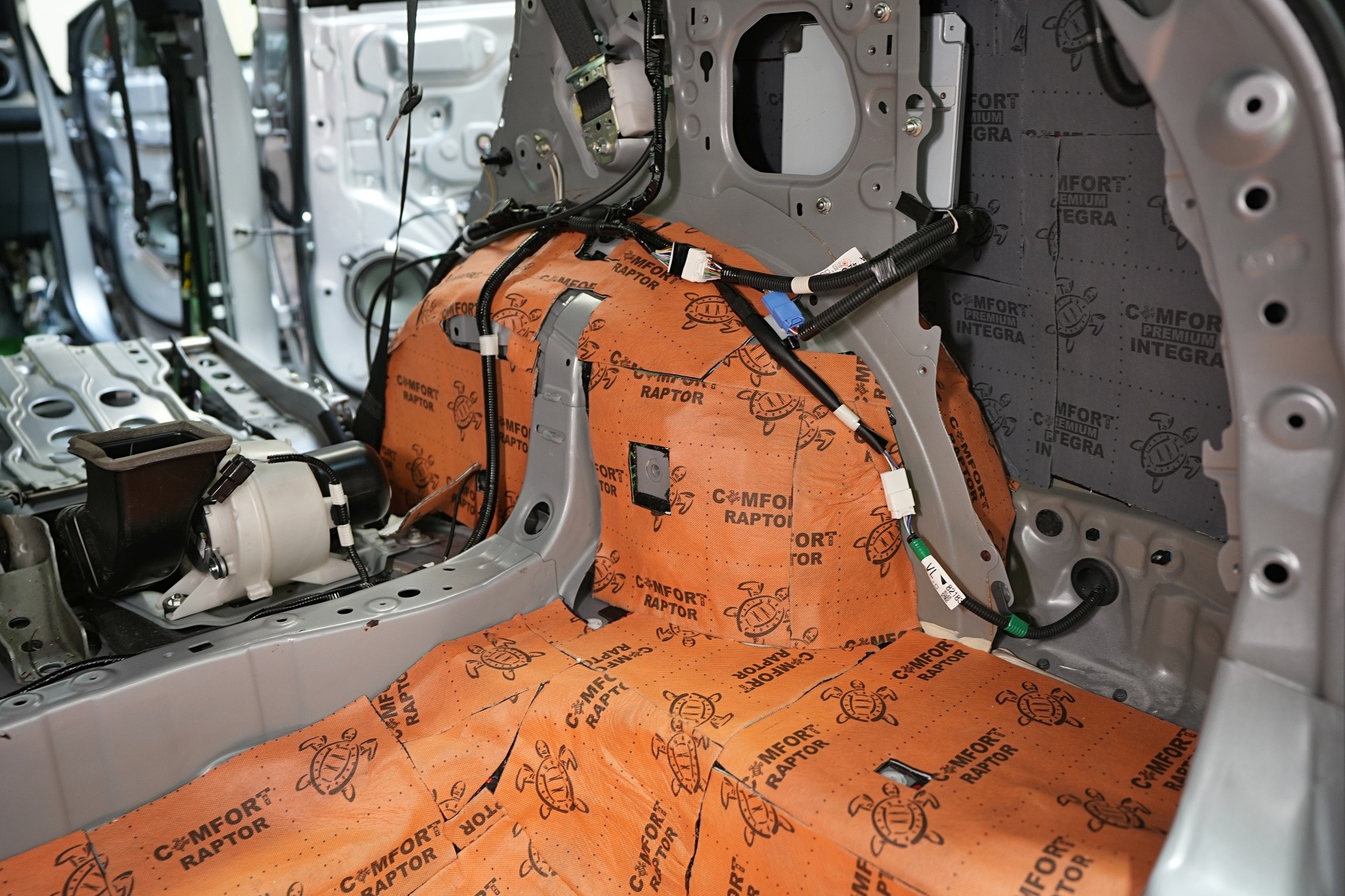 Шумоизолация на Toyota RAV4 най-новото поколение. В сравнение с предишната версия този популярен кросоувър е неузнаваем. Той е пораснал, уплътнен, хвали се с ъгловат дизайн и същевременно се оказа, че автомобилът е по-комфортен благодарение на преконфигурирането на стандартното окачване. Toyota също така подобри звуковата изолация, според което шумът е намален с 30%, особено в областта на вибрациите. Собственикът и наш клиент обаче не е съгласен и тъй като неговият автомобил е нетърпимо шумен, особено при повишаване на скоростта, той се реши на нашия най-ефективен пакет шумоизолация Expert Plus. Затова се фокусирахме върху всички ключови зони на автомобила, използвайки най-ефикасните ни материали Comfortmat от професионалната серия Expert. Те осигуряват предимно по-висока степен на шумоизолация на най-важните области като пода и подкрилките. По-конкретно шумоизолирахме предните, задните и петата врата, пода, багажното отделение, предните и задните подкрилки отвътре, покрива, таблото и предния капак. По монтажа работеха едновременно четирима наши опитни техници, които завършват инсталацията в рамките на 1 работен ден. Повече интересна информация за инсталацията можете да намерите в нашия фоторепортаж.