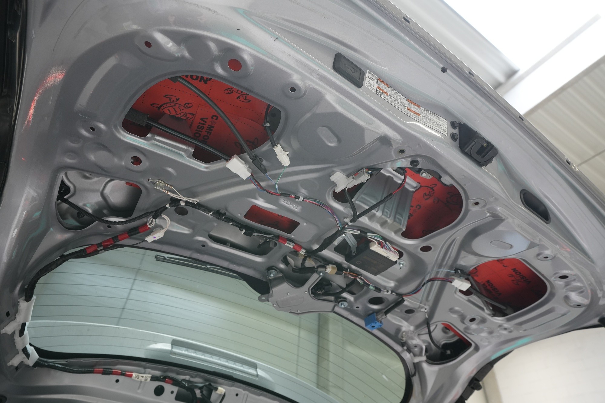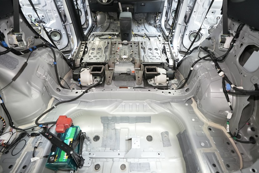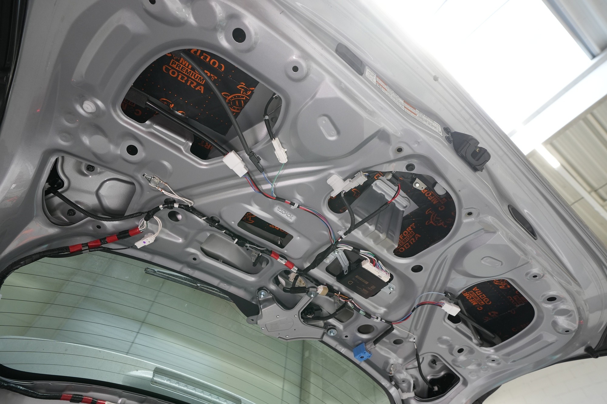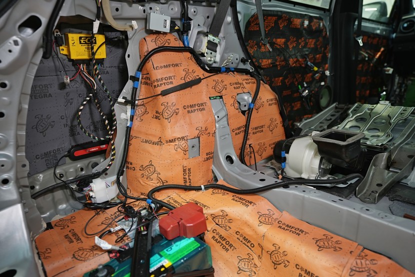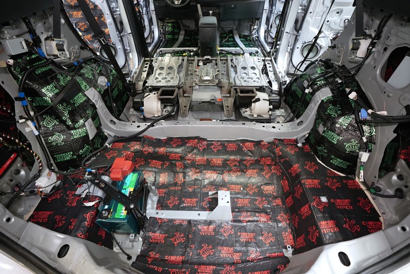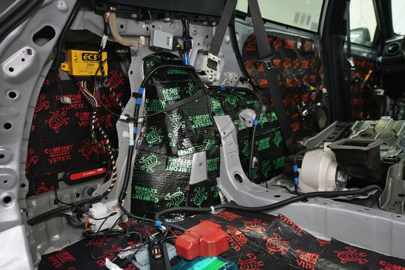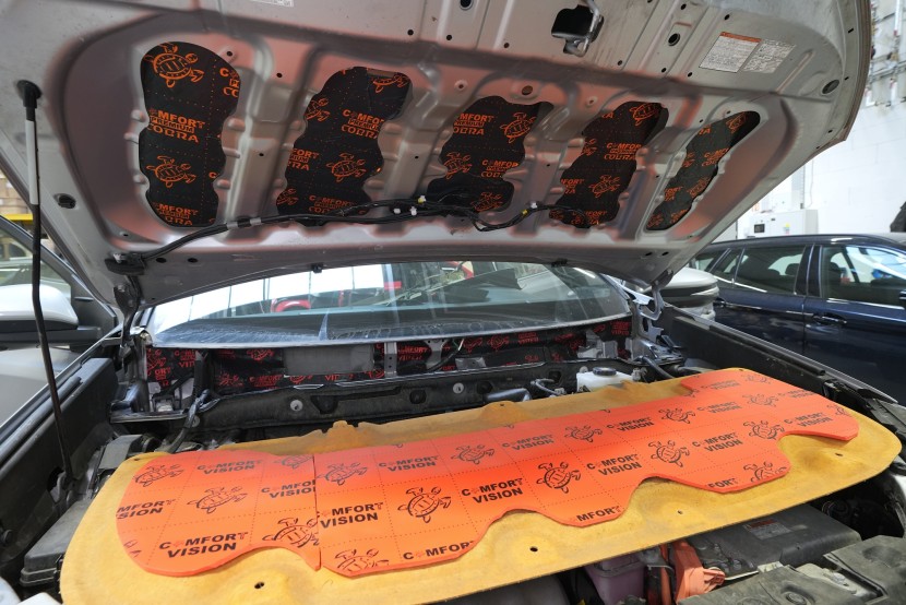 Шумоизолация на Toyota RAV4 най-новото поколение. В сравнение с предишната версия този популярен кросоувър е неузнаваем. Той е пораснал, уплътнен, хвали се с ъгловат дизайн и същевременно се оказа, че автомобилът е по-комфортен благодарение на преконфигурирането на стандартното окачване. Toyota също така подобри звуковата изолация, според което шумът е намален с 30%, особено в областта на вибрациите. Собственикът и наш клиент обаче не е съгласен и тъй като неговият автомобил е нетърпимо шумен, особено при повишаване на скоростта, той се реши на нашия най-ефективен пакет шумоизолация Expert Plus. Затова се фокусирахме върху всички ключови зони на автомобила, използвайки най-ефикасните ни материали Comfortmat от професионалната серия Expert. Те осигуряват предимно по-висока степен на шумоизолация на най-важните области като пода и подкрилките. По-конкретно шумоизолирахме предните, задните и петата врата, пода, багажното отделение, предните и задните подкрилки отвътре, покрива, таблото и предния капак. По монтажа работеха едновременно четирима наши опитни техници, които завършват инсталацията в рамките на 1 работен ден. Повече интересна информация за инсталацията можете да намерите в нашия фоторепортаж.