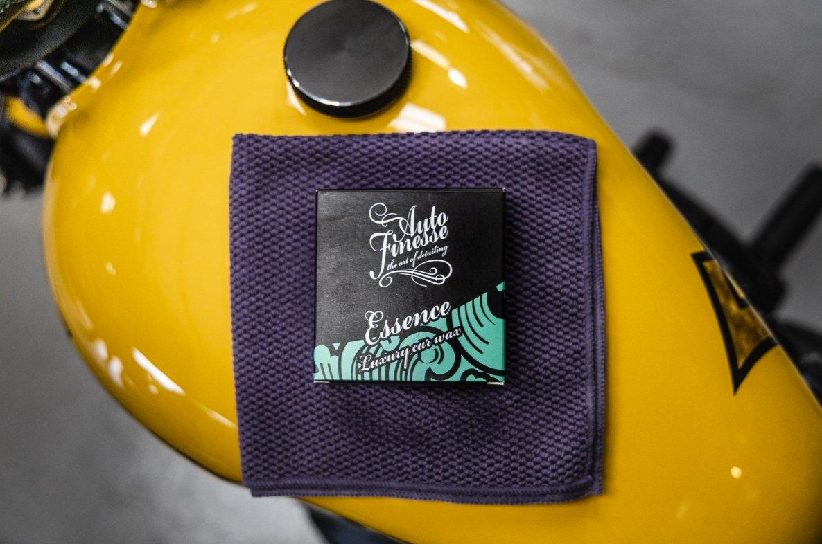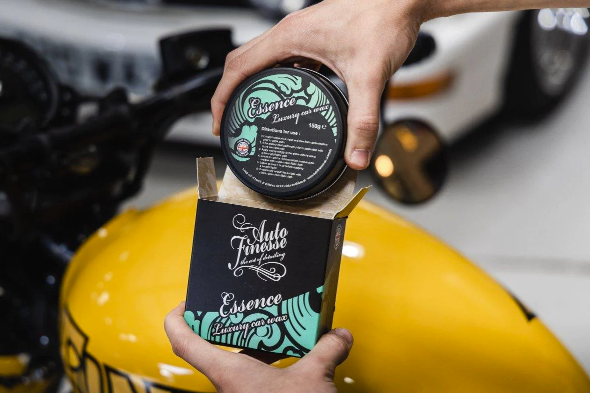 Essence е ръчно изработен восък във Великобритания, където се спазва строго съотношението на истинска бразилска карнауба, синтетични полимери и масла. Восъците се използват за защита на превозното средство срещу вредните влияния на природата. Важни са също устойчивостта на UV лъчи, водоотблъскващите свойства, устойчивостта на киселинни дъждове, птичи изпражнения и т.н. Auto Finesse Essence съдържа 40% T1 клас бразилски карнаубски восък, като останалата част е съставена от синтетични полимери и масла. Този восък е разработен за истинска дълбочина на лака и високо блясък. Съдържанието на нетлетливи съставки във восъка осигурява на Essence издръжливост до 3 месеца след нанасяне при автомобил в ежедневна употреба. Перфектната водоотблъскваща способност ви кара да наблюдавате капките вода по време на дъжд, които се превръщат в малки топчета и се стичат, без да оставят воден отпечатък върху лака. Восъкът Essence е подходящ за тъмни и топли оттенъци на боята. Подходящ за употреба както на автомобили, така и на мотоциклети.