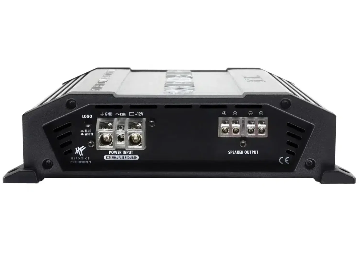 Брушираният алуминиев радиатор в елегантно сиво е сам по себе си приятна за окото гледка. Черните краища от леян алуминий допълнително подчертават високото качество на серията ZEUS EVOLUTION ZXE. Визуалният връх е подсветеното лого Hifonics, което може да се превключва между синьо и бяло. Но не само логото е подсветено – и клемите за захранване и за говорители светят в типичното Hifonics синьо и създават още един изразителен дизайнерски елемент.