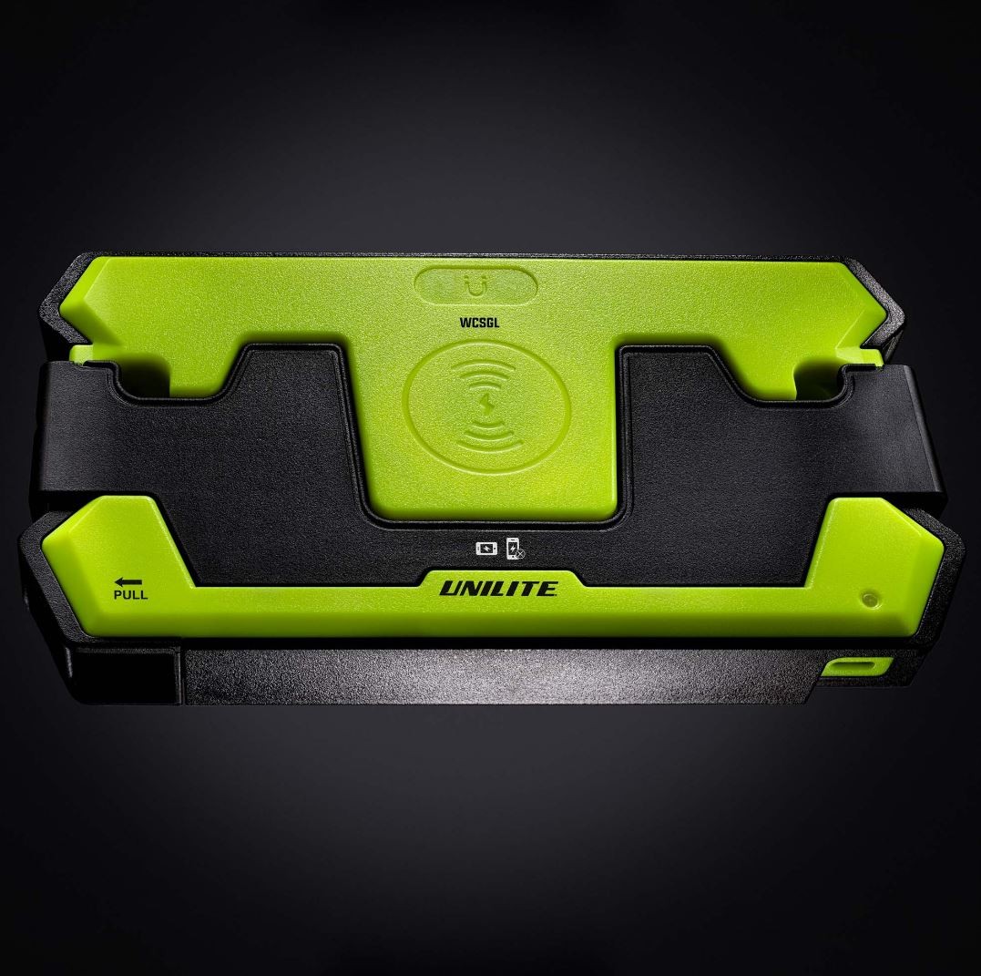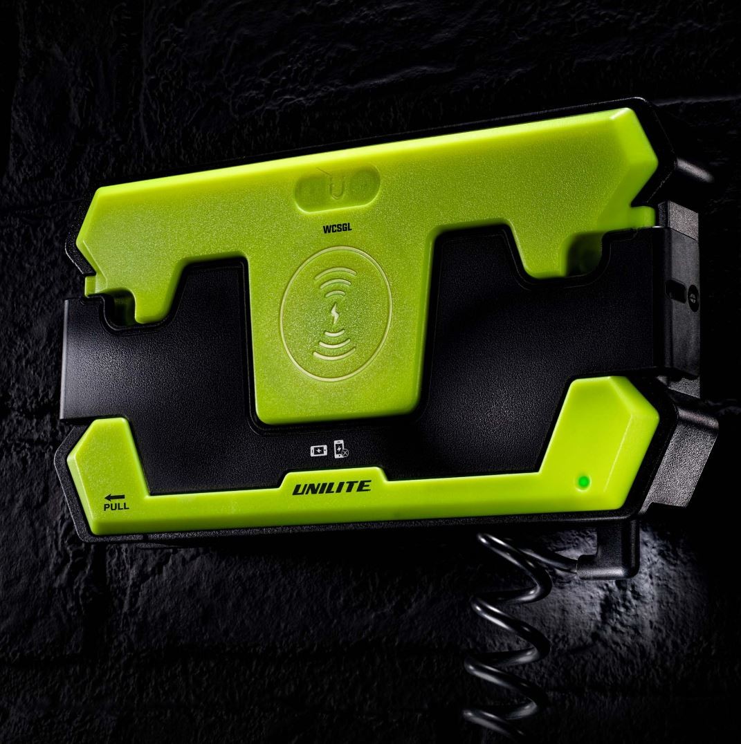 WCSGL е ултра здрава безжична подложка за зареждане за новата серия безжично зареждащи LED работни светлини и също смартфони. Тази подложка с ултра твърда ABS и найлонова полимерна конструкция предлага удароустойчивост IK07. Силните магнити от задната страна позволяват лесно монтиране на магнитни повърхности, както и вградени отвори за винтове за трайно закрепване. Идеална за зареждане на едно устройство; за зареждане на повече устройства поръчвайте Unilite WCDBL.