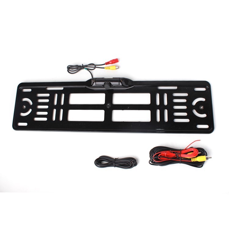 Табелата с регистрационния номер се вмъква в горната част в жлеба на подложката, също е необходимо да се използва двустранна лепенка (не е в опаковката) за закрепване на табелата в вертикална посока. Камерата е предназначена за неоригинални (довмонтирани) радиа с CINCH AV вход. Използването с оригинално радио може да изисква свързване на видео адаптер за паркинг камера!