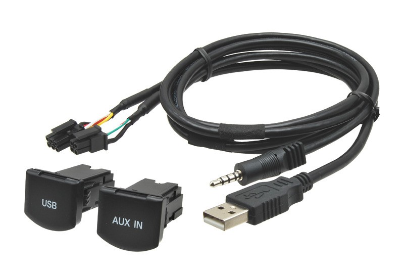 - Адаптер за свързване на USB и AUX сигнал, който замества оригиналния конектор в автомобила при използване на aftermarket (допълнително) инсталирана автомагнитола.