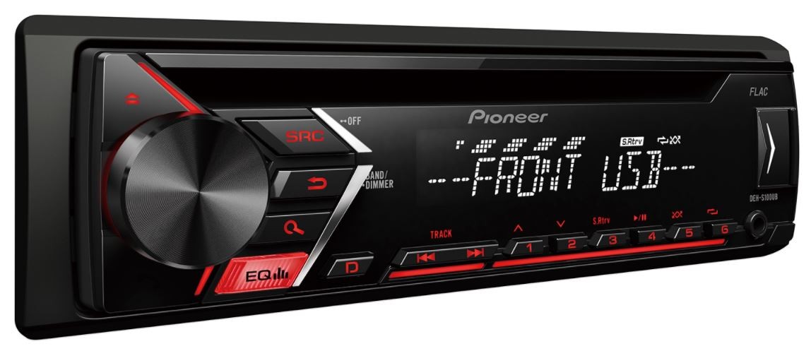 Всяка година Pioneer излиза на пазара с нов основен модел CD автомобилно радио, който Pioneer непрекъснато подобрява. Моделът за 2018 отново изглежда отлично със своя осветен черен преден панел. Този модел автомобилно радио ви позволява да се насладите на любимата музика от FM радиостанции, CD, смартфони, USB устройства или чрез AUX връзка. Автомобилно радио Pioneer DEH-S100UB предлага мощност 4 x 50 W MOSFET и RCA изход за свързване на допълнителни стереокомпоненти. Радиото има отличен LCD дисплей с ярко червено подсветени бутони. Нова функция е запазването на паметта при изключване на радиото от захранването.