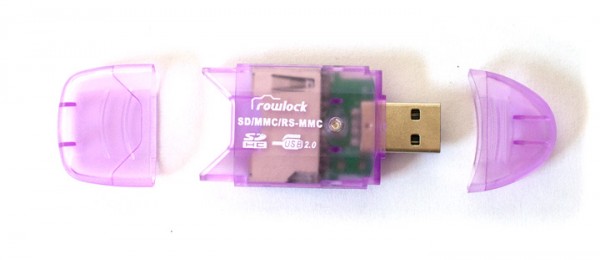 USB четец на паметни SD карти. Устройството служи за свързване и четене на SD карта в компютър чрез USB интерфейс.