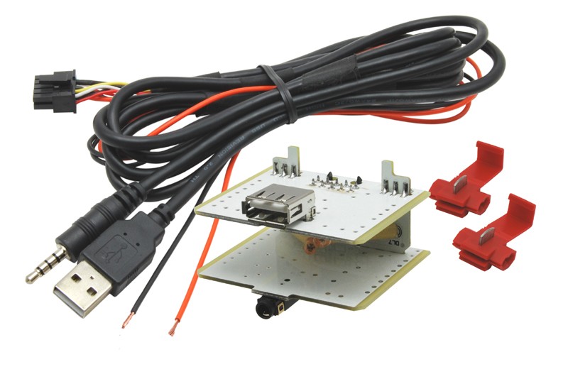- Адаптер за свързване на USB и AUX сигнал замества оригиналния конектор в автомобила при използване на aftermarket (допълнително) инсталирано радио.