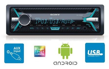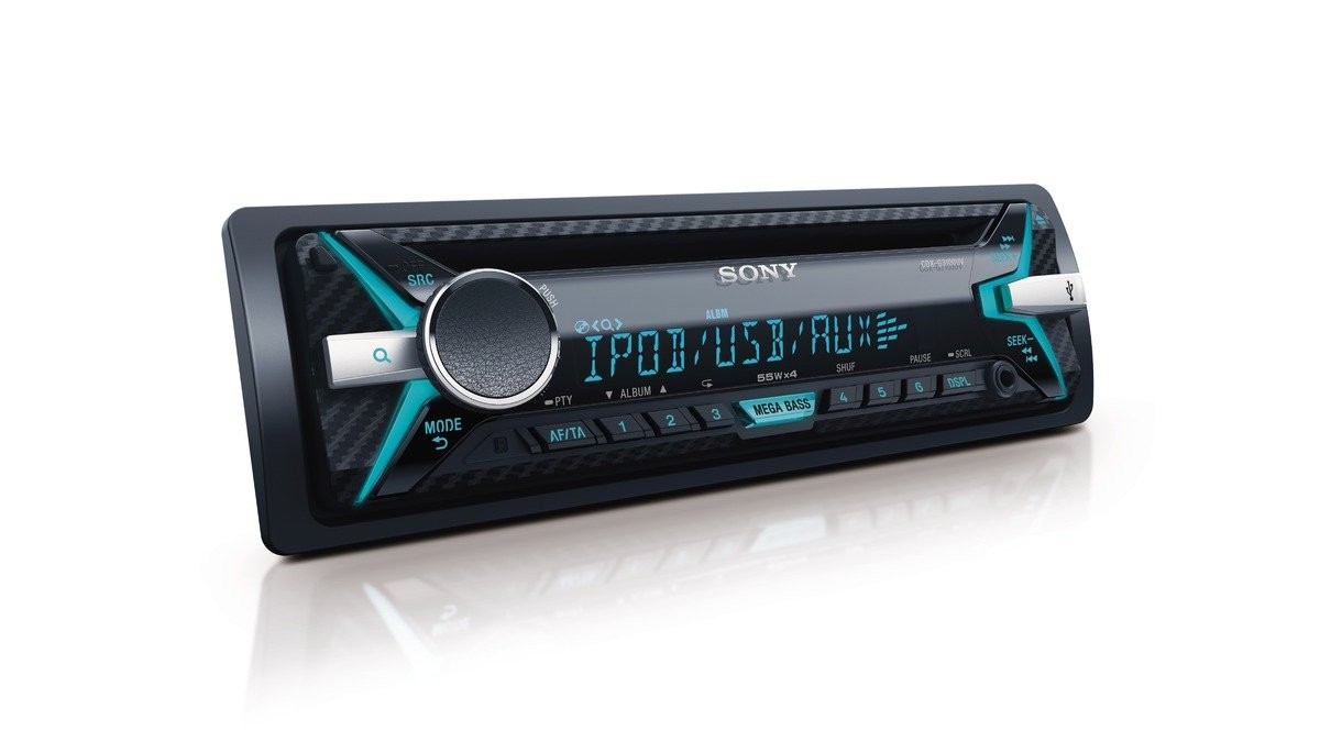 Автомобилно радио SONY размер 1DIN с CD плейър, USB вход, MEGA BASS EQ5 и изходна мощност 4 x 55W, вариабилно подсветяване.