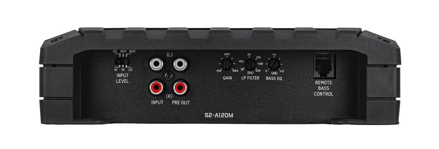 Новото поколение усилватели Alpine от серия S е проектирано да повиши вашето автомобилно аудио изживяване на по-високо ниво, без да струва повече. Благодарение на новия елегантен дизайн и подобрените функции в сравнение с предшествениците си, тези усилватели предлагат изключителна мощност и сила на приемлива цена. Новото поколение монофоничен субуферен усилвател S2-A120M от серия S позволява много по-лесно да постигнете страхотни баси във вашия автомобил, тъй като предоставя мощност до 1200 W RMS при 2 ома. Тази масивна мощност позволява дори използването на няколко субуфера от един усилвател. Регулируемото усилване на басите ви позволява да зададете допълнителна ударност и сила за по-голямо удоволствие от ниските честоти. Можете дори да добавите по избор кабелен дистанционен контролер за управление на нивото на басите от предната седалка. Благодарение на вградения нискочестотен филтър имате контрол върху честотния спектър, който достига до вашия субуфер. Усилвателят съдържа входове на ниво предусилвател и на ниво говорители, така че може да бъде инсталиран в почти всеки автомобил, дори и в автомобил с фабрично радио. При използване на входовете на ниво говорители усилвателят може да разпознае входящия сигнал и да се включи сам, като по този начин отпада нуждата от отделен включващ проводник към приемника или кутията с предпазители.Основни характеристики