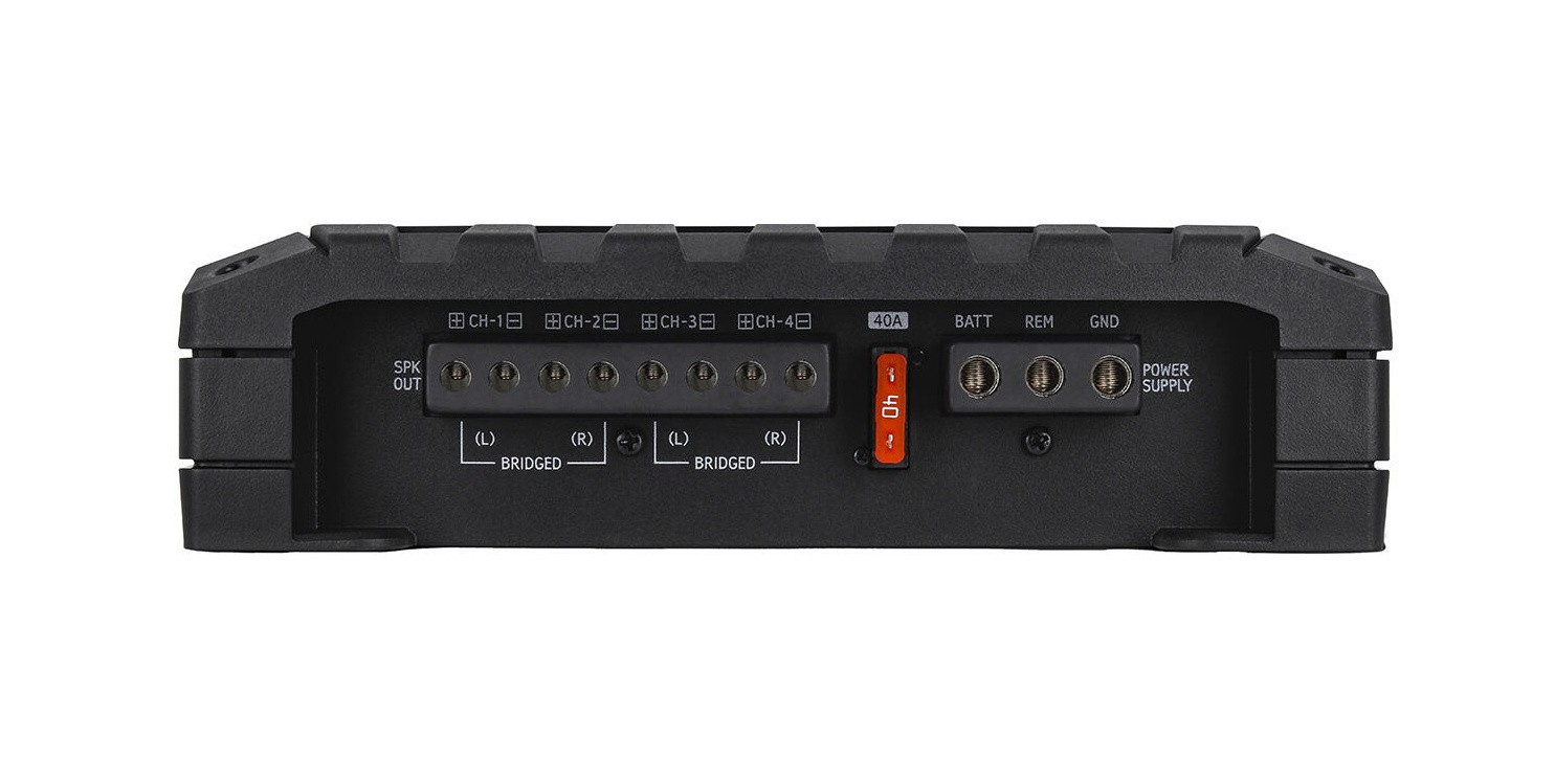 | Брой каналиУсилвателите се разделят на: - моноблокове - 2-канални - 3-канални - 4-канални - 5-канални - 6-канални - многоканални Всеки канал служи за захранване на един високоговорител при коаксиален тип или на една страна, ако става въпрос за компонентни високоговорители. Усилвателите от тип моноблок се използват предимно за субуфери. 2-каналните са подходящи както за субуфери, така и например за преден чифт високоговорители в автомобила. 3-каналните се използват за предни или задни високоговорители + субуфер. 4-каналните се използват за предни + задни високоговорители или 1 чифт високоговорители + субуфер. 5- или 6-каналните обикновено се използват за 2 чифта високоговорители + субуфер. Бриджиране означава свързване на усилвателя в мост, когато се използва + полюс от един канал и - полюс от другия канал. В повечето случаи това е означено на усилвателя като "BRIDGED". | 4 |