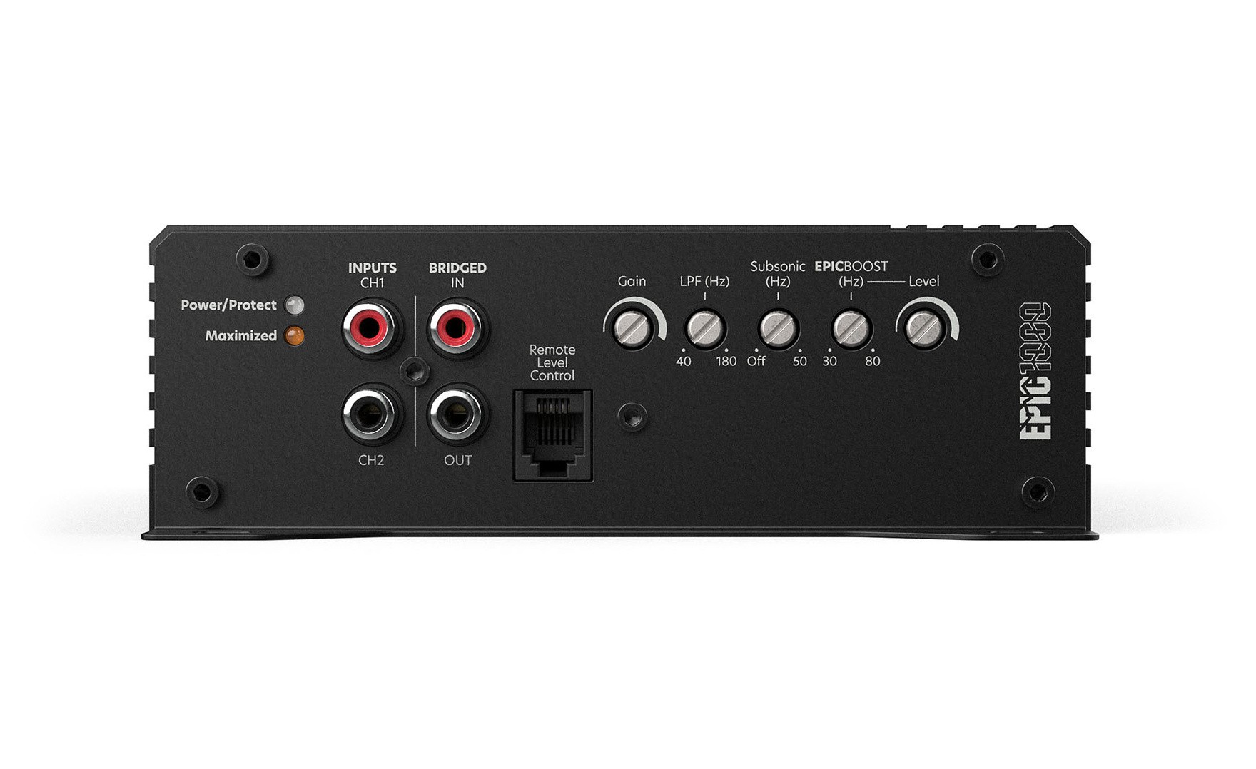 Усилвателите AudioControl от серията EPIC комбинират висока мощност, компактни размери и стабилна работа при ниска импеданс. Те са проектирани за задвижване на субуфъри и мощни говорители и благодарение на цифровата технология Class-D осигуряват ефективен пренос на енергия дори при тежко натоварване. Моделът EPIC1000 предлага стабилност до 1 Ω, променливи филтри и възможност за настройка на усилване на басите, което позволява прецизно донастройване на нискочестотната част според нуждата. В комплекта е включен дистанционен контрол ACR-E за регулиране на нивото на баса директно от мястото на водача. Усилвателят е също така оборудван със защитни вериги срещу претоварване, пренапрежение, поднапрежение или прегряване, което гарантира надеждна и дълготрайна експлоатация. За инсталация са предвидени масивни захранващи и високоговорителни клеми с твърди винтови съединения. Epic500 може също да бъде свързан с процесора The Epicenter Bass Restoration, който разширява възможностите за настройка и басово представяне.