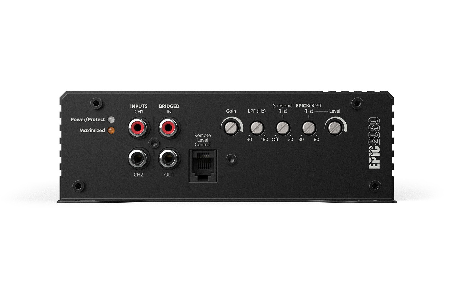 Усилвателите AudioControl от серията EPIC комбинират висока мощност, компактни размери и стабилна работа при ниска импеданс. Те са проектирани за задвижване на субуфъри и мощни говорители и благодарение на цифровата технология Class-D осигуряват ефективен пренос на енергия дори при тежко натоварване. Моделът Epic2000 предлага стабилност до 1 Ω, променливи филтри и възможност за настройка на усилване на басите, което позволява прецизно донастройване на нискочестотната част според нуждата. В комплекта е включен дистанционен контрол ACR-E за регулиране на нивото на баса директно от мястото на водача. Усилвателят е също така оборудван със защитни вериги срещу претоварване, пренапрежение, поднапрежение или прегряване, което гарантира надеждна и дълготрайна експлоатация. За инсталация са предвидени масивни захранващи и високоговорителни клеми с твърди винтови съединения. Epic500 може също да бъде свързан с процесора The Epicenter Bass Restoration, който разширява възможностите за настройка и басово представяне.