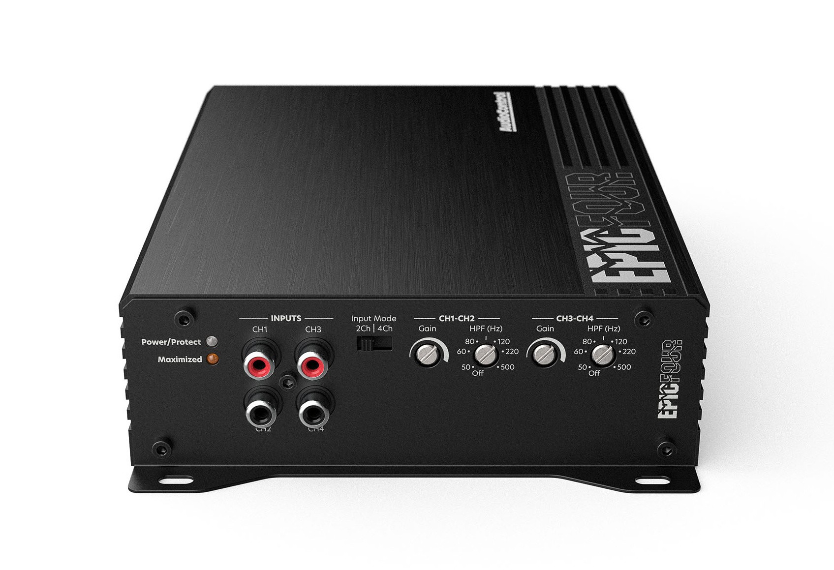 Усилвателите AudioControl от серията EPIC комбинират висока мощност, компактен размер и стабилна работа при ниска импеданс. Те са проектирани за задвижване на субуфери и мощни говорители и благодарение на цифровата технология Class-D осигуряват ефективно предаване на енергия дори при тежко натоварване. Моделът EPICFOUR е четириканален усилвател, който поддържа стабилна работа до 2 Ω и предлага разнообразни възможности за използване – от задвижване на четири отделни говорителя до мостово свързване за повишена мощност на два канала. Благодарение на ефективно охлаждане, защита с автоматично ресетване и масивни клеми за захранване и говорители, той е подходящ и за по-взискателни инсталации, където се изисква мощност и компактни размери. Налични са променливи високопропускателни филтри Linkwitz-Riley, които позволяват точно настройване за отделните канали. Усилвателят е снабден с интелигентни защитни вериги срещу претоварване, пренапрежение, поднапрежение и прегряване, което осигурява дълъг живот и безопасна експлоатация.