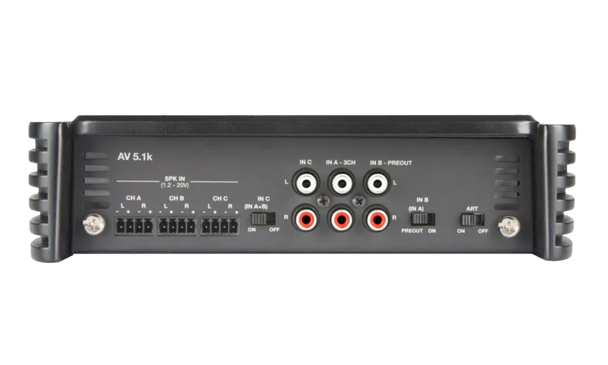 Петканален усилвател AV 5.1k с максимално 1650 W (RMS) в сумата. Благодарение на своята хибридна конструкция това е специален усилвател за предни + задни + субуфер, или многозасилени предни + субуферни системи. Неговият висококачествен изход в клас AB осигурява два канала с мощност 250 W (RMS) в комбинация с още една двойка чисти звукови канали в клас A с мощност 75 W (RMS), което е идеално за активни системи с двулентови предни говорители. D моно секцията осигурява мощност 1000 W (RMS) за ефективен и мощен изход на субуфера. AMP (Amplifier Management Processor) постоянно контролира операционната система и комуникира с потребителя чрез 4 различно оцветени LED индикатора, разположени на горния панел; ART (Automatic Remote Turn On-Off) позволява автоматично включване/изключване, когато няма наличен сигнал от източника. AV 5.1k също позволява замяна на аналоговата входна платка с цифрова платка (AV bit IN).За марката