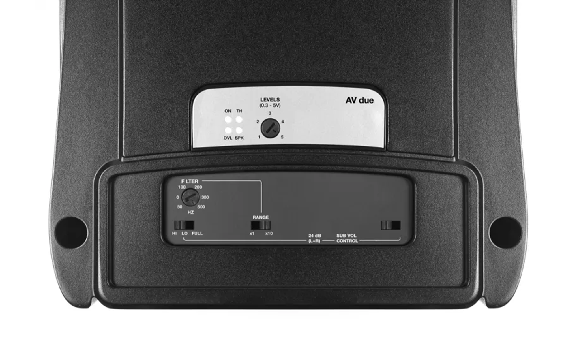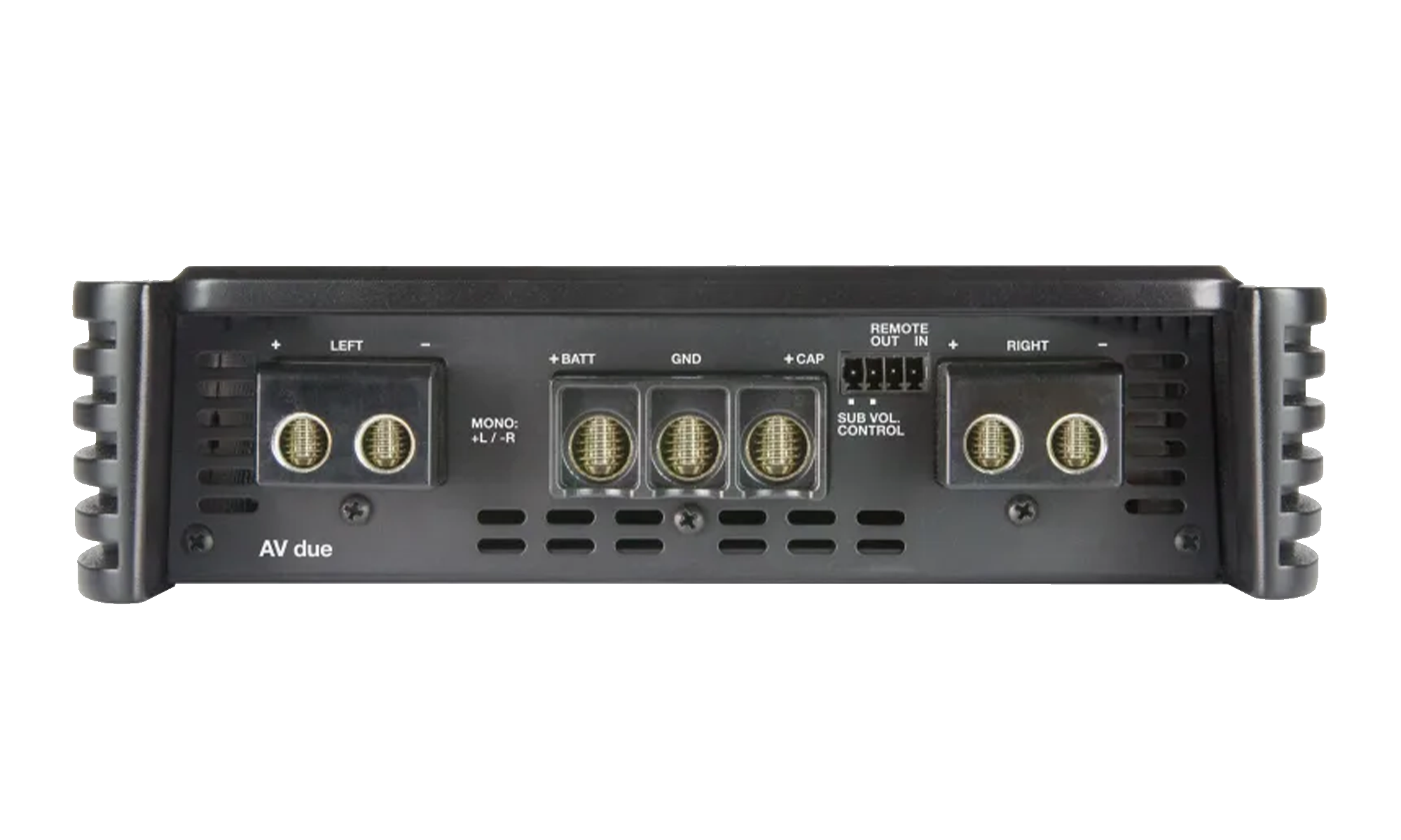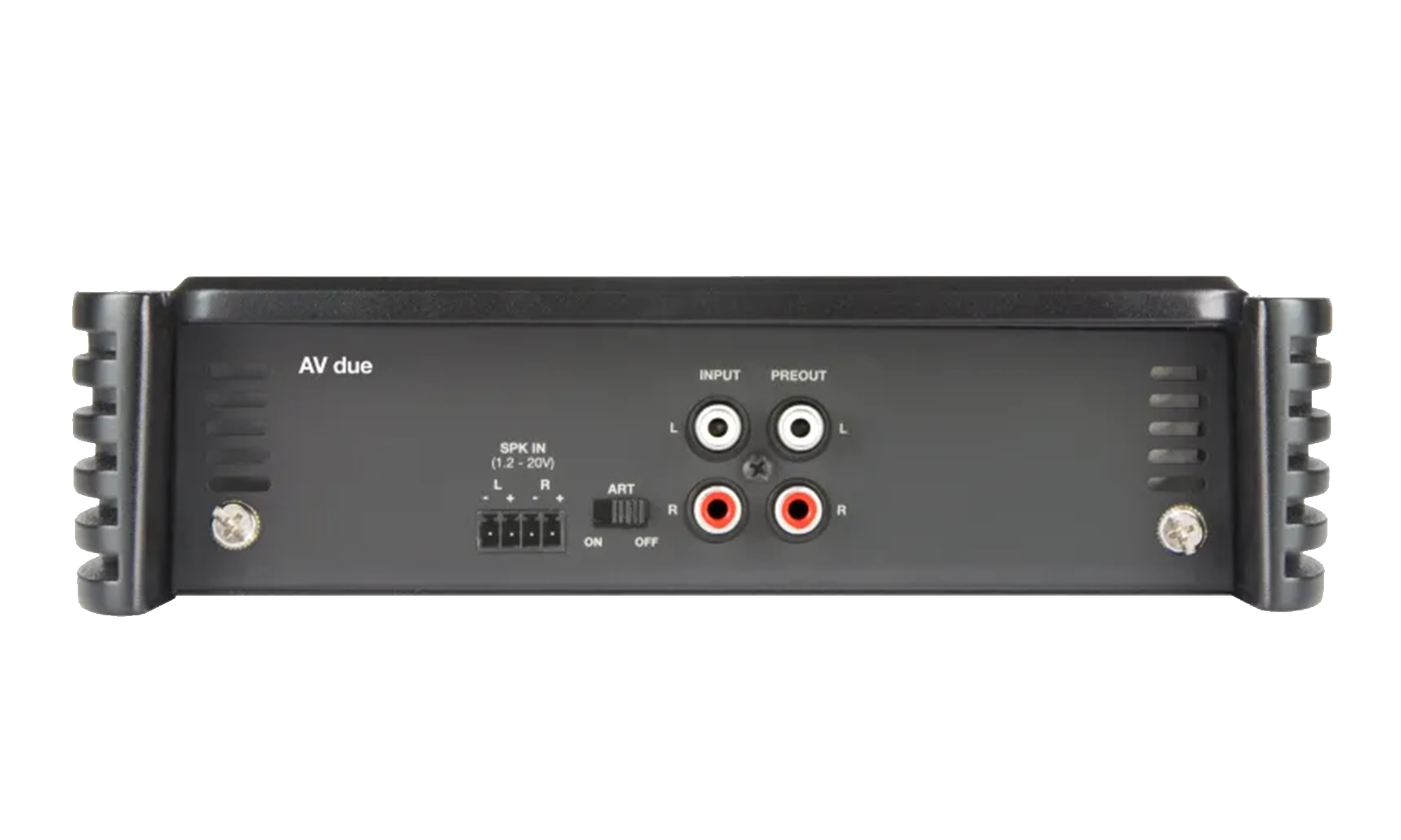 AV due е мощен стерео усилвател, който осигурява много висок изходен ток с мощности до 900 W (RMS). AMP (Amplifier Management Processor) постоянно контролира операционната система и комуникира с потребителя чрез 4 различни цветни LED диода, разположени на горния панел. ART (Automatic Remote Turn On-Off) позволява автоматично включване/изключване, ако няма наличен сигнал от източника. Ако използвате субуфер в моно връзка, можете да използвате дистанционното управление на нивото VCRA, като го свържете към специалния изход SUB VOL. За всеки тип инсталация има безкрайни възможности за настройка. Функциите на AV due също позволяват да замените платката на аналоговия вход с цифрова платка (AV bit IN).За марката