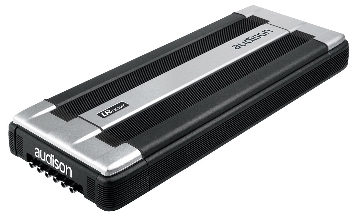 | Брой каналиУсилвателите се разделят на: - моноблокове - 2-канални - 3-канални - 4-канални - 5-канални - 6-канални - многоканални Всеки канал служи за захранване на един високоговорител при коаксиален тип или на една страна, ако става въпрос за компонентни високоговорители. Усилвателите от тип моноблок се използват предимно за субуфери. 2-каналните са подходящи както за субуфери, така и например за преден чифт високоговорители в автомобила. 3-каналните се използват за предни или задни високоговорители + субуфер. 4-каналните се използват за предни + задни високоговорители или 1 чифт високоговорители + субуфер. 5- или 6-каналните обикновено се използват за 2 чифта високоговорители + субуфер. Бриджиране означава свързване на усилвателя в мост, когато се използва + полюс от един канал и - полюс от другия канал. В повечето случаи това е означено на усилвателя като "BRIDGED". | 5/4/3-канален |