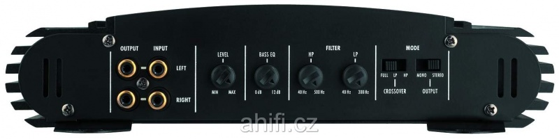 | Филтър за високи честоти (HPF)HPF / HP или "hi pass filter" предлага възможност за настройка на усилвателя чрез потенциометър така, че средните, евентуално среднобасовите и високите честоти да възпроизвеждат от определена честота нагоре. Пример: Усилвателите най-често имат HPF от 40 до 300 Hz. Ако настроим на потенциометъра стойност ок. 150 Hz, звукът ще бъде отсечен така, че ще възпроизвежда честоти от 150 Hz до максималната горна граница на целия честотен обхват на усилвателя, примерно до 20.000 Hz. Препоръчваме да настройвате този потенциометър в диапазона 80-160 Hz. Благодарение на тази възможност за настройка, високоговорителите понасят по-голяма мощност, тъй като няма да ги претоварвате с баси в долния честотен диапазон. | 40 - 500 Hz |
