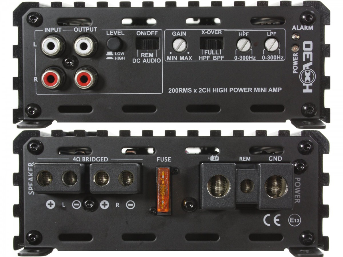 Двуканален, 2 x 150 / 1 x 400 W RMS на 4 Ω, клас A, вход с високо ниво