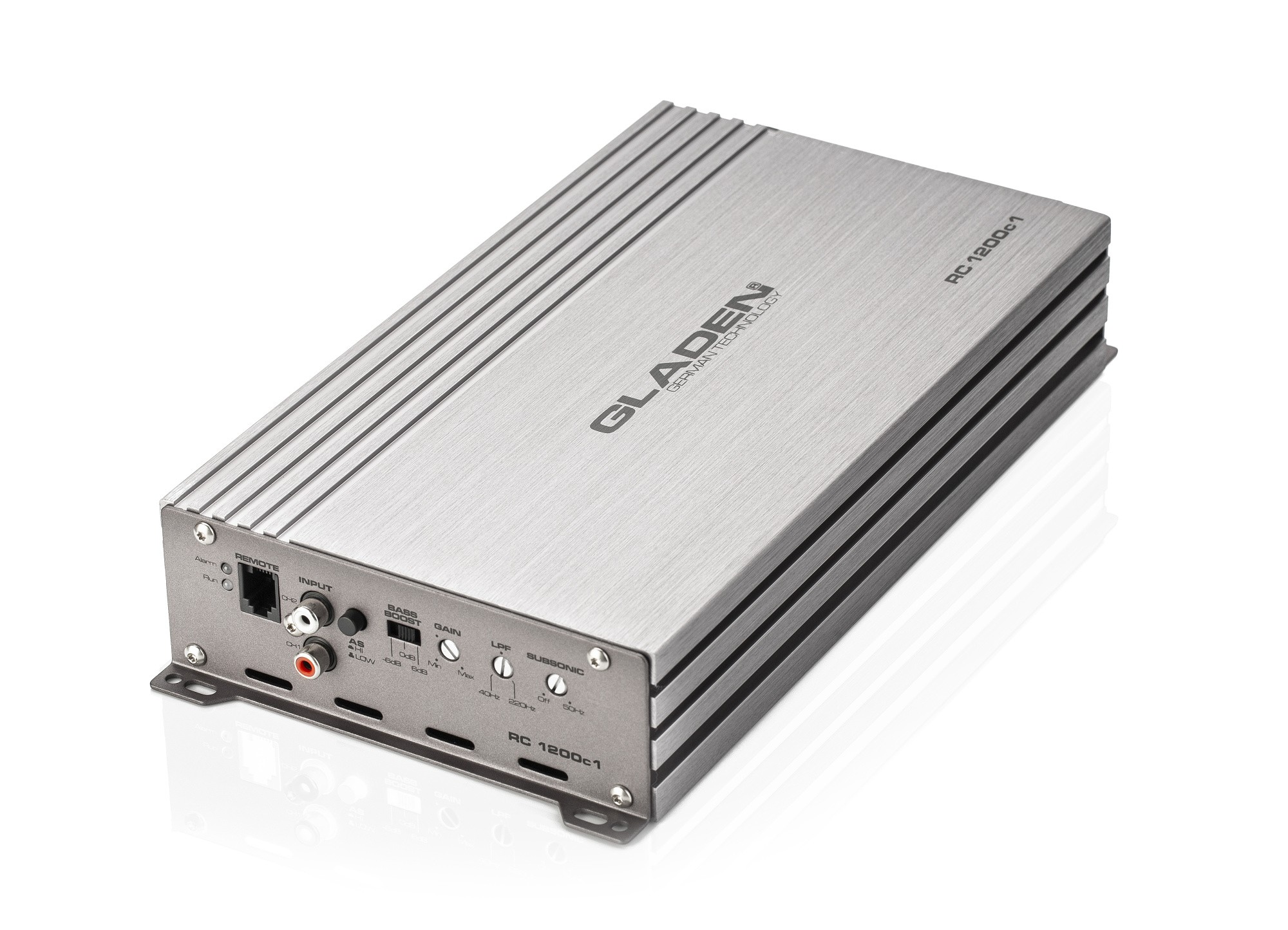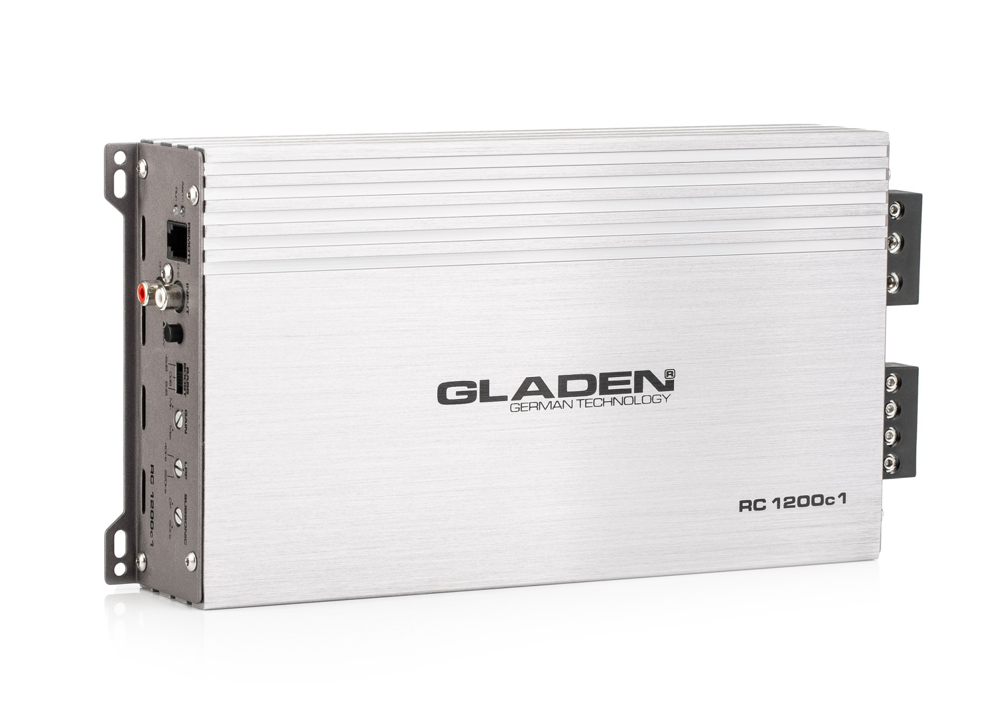 Качественият усилвател е основата на всяка автомобилна hifi система. Той може да предава музиката към говорителите с висока и незаменена динамика. Усилвателите от серията RC са разработени и произведени със същия висок стандарт като всички продукти на Gladen. С практично оборудване, като кросоувър или входове за висок уровень, RC усилвателите Gladen съставляват важен основен елемент на вашата автомобилна hifi система. За да бъде серията усилватели Gladen RC пълна, трябва да се предложи и мощен моноблок на разумна цена. За тази цел е създаден моделът Gladen RC 1200c1, който има мощност над 1 kW RMS при 1 ома, което в тази ценова категория е много добро предложение. Освен това усилвателят има вграден High/Low преобразувател с функция Auto Sense и възможност за свързване на дистанционно управление.Основни характеристики на усилвателя Gladen RC 1200c1 G3