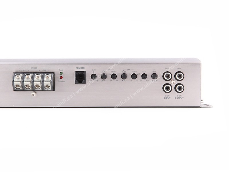 2-канален, 2 x 285 / 1 x 940 при 4 Ω / 2 x 470 / 1 x 1500 W RMS при 2 Ω, клас AB, вход с високо ниво