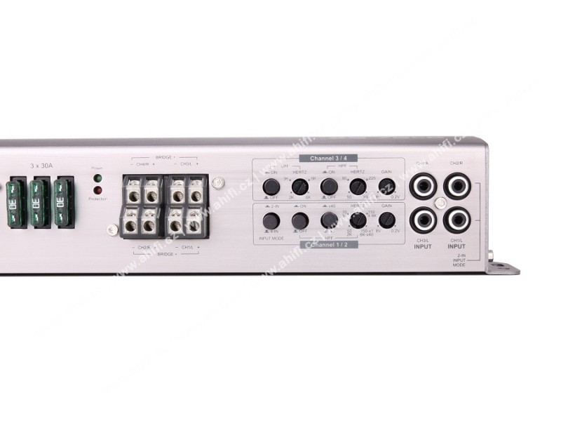 6-канален, 4 x 70 + 2 x 100 (1 x 380) / 2 x 180 + 1 x 380 при 4 Ω / 4 x 90 + 2 x 190 (1 x 480) W RMS при 2 Ω, клас AB