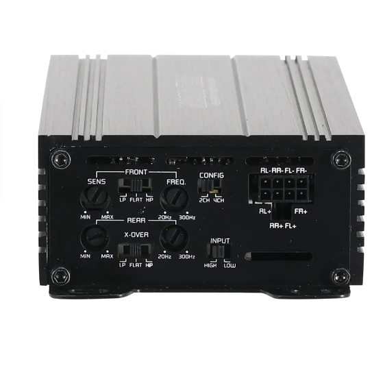 | Брой каналиУсилвателите се разделят на: - моноблокове - 2-канални - 3-канални - 4-канални - 5-канални - 6-канални - многоканални Всеки канал служи за захранване на един високоговорител при коаксиален тип или на една страна, ако става въпрос за компонентни високоговорители. Усилвателите от тип моноблок се използват предимно за субуфери. 2-каналните са подходящи както за субуфери, така и например за преден чифт високоговорители в автомобила. 3-каналните се използват за предни или задни високоговорители + субуфер. 4-каналните се използват за предни + задни високоговорители или 1 чифт високоговорители + субуфер. 5- или 6-каналните обикновено се използват за 2 чифта високоговорители + субуфер. Бриджиране означава свързване на усилвателя в мост, когато се използва + полюс от един канал и - полюс от другия канал. В повечето случаи това е означено на усилвателя като "BRIDGED". | 4 |
