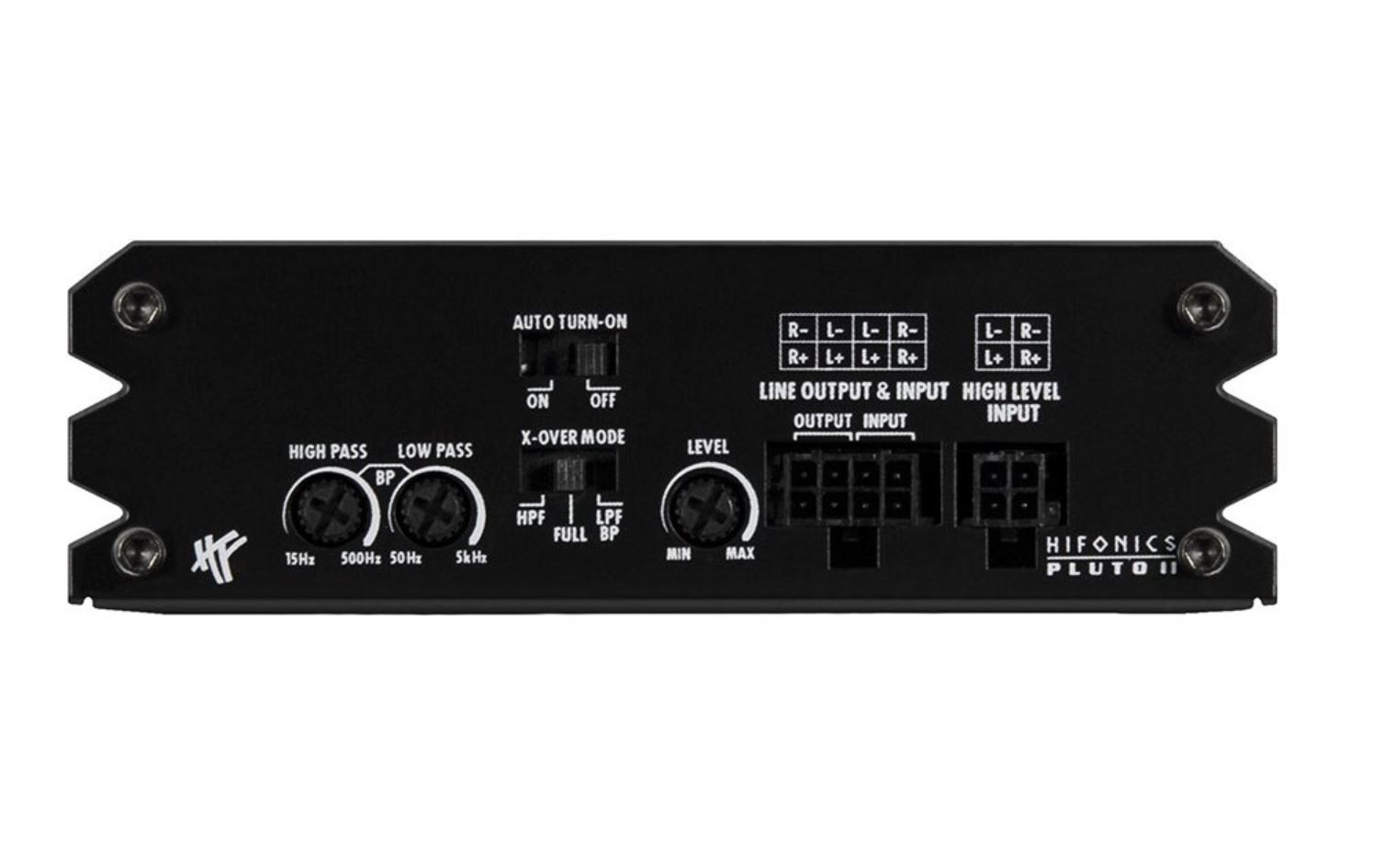 Hifonics продължава доказаната традиция на компактни усилватели със съвсем новата серия PLUTO - за щастие тези усилватели отново са по-малки. Освен това са висококачествени и натъпкани с модерни функции. Свиването на размерите бе възможно благодарение на технологията клас D, която се отличава с изключително висока ефективност до 90 %. Интересно е, че с увеличаването на плътността на мощността вследствие на прогреса в полупроводниковата технология се увеличава и акустичният потенциал. Новите PLUTO усилватели са не само изключително компактни, но и звучат отлично. Толкова важни колкото мощността или компактният размер на инсталацията са и въпросите дали новите усилватели могат да се интегрират в модерните автомобили, особено ако на борда има „системи за диагностика на грешки“. Такива системи диагностицират, когато нещо се промени спрямо първоначалната фабрична конфигурация. Поради тази причина в високо-нивовите входове на серията PLUTO са интегрирани усъвършенствани EPS и функции за автоматично включване, за да се гарантира фунционирането особено в модерните автомобили. Допълнителни преобразуватели могат да бъдат спестени. Hifonics традиционно придава голямо значение не само на вътрешните качества, но и на високото ниво на изработка. И по този начин PLUTO се представя като много висококачествена серия.