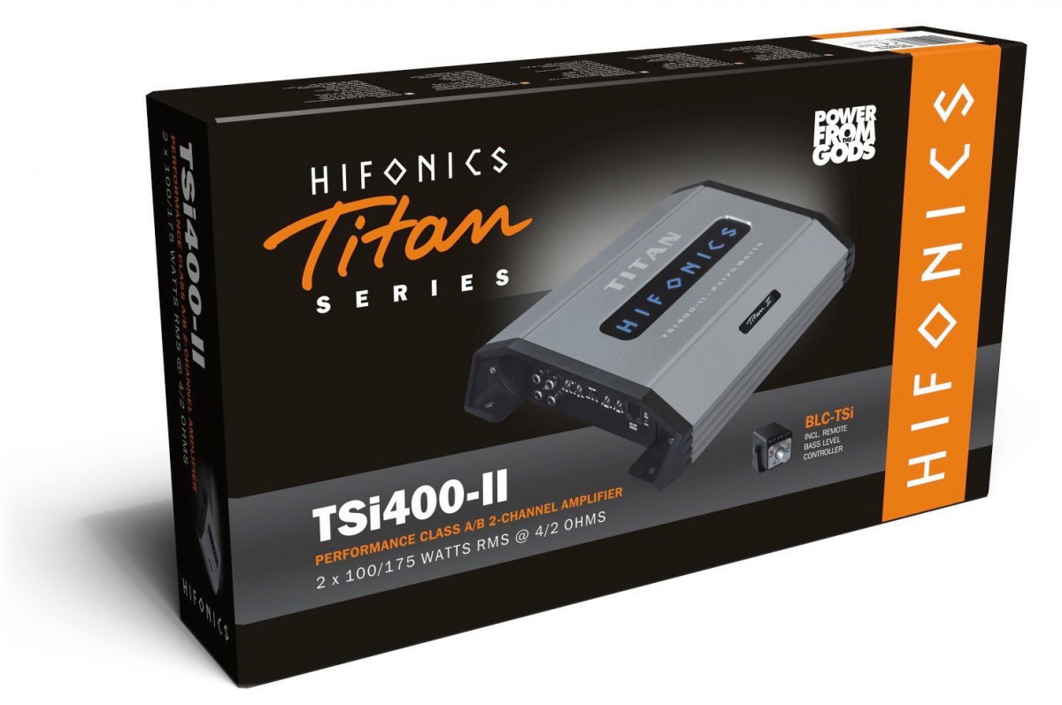 Напълно новата серия усилватели Titan TSi продължава традицията на мощните усилватели HiFonics. Модерен и компактен дизайн и съвсем нови технологии в сравнение с предишните модели. Новата функция Autorun включва усилвателя автоматично при включване на уредбата (не е необходимо свързване на remote кабел). Сигналът може да се свърже както с RCA (cinch) кабели, така и чрез вход за висок ниво. Функцията за автоматично включване позволява този усилвател да бъде свързан към почти всяка система във всеки автомобил и дори като разширение на фабричното озвучаване. Серията Titan TSi представлява топ-клас звук дори за най-взискателните. Заедно с прецизния дизайн на шасито и вграденото лого с двойно подсветяване, всеки усилвател Titan TSi е перфектен!