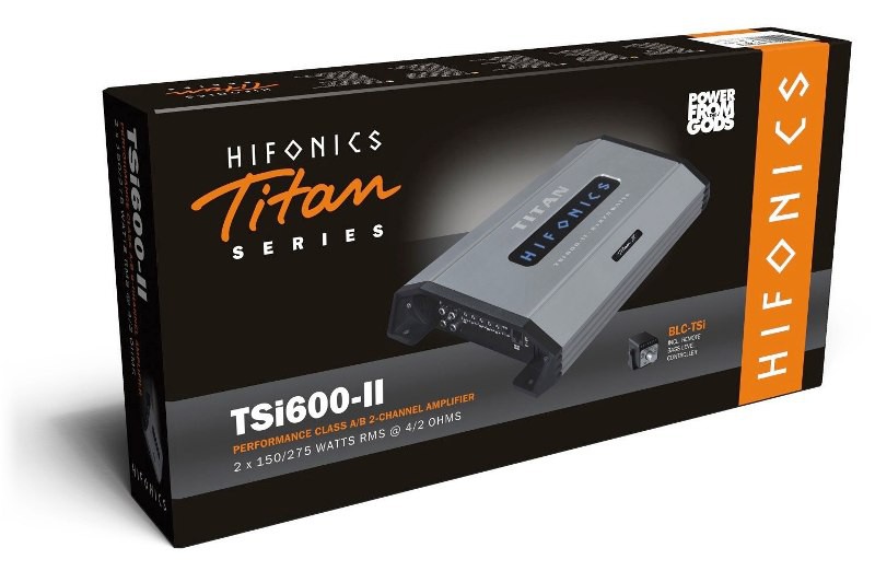 Напълно новата серия усилватели Titan TSi продължава традицията на мощните усилватели HiFonics. Модерен и компактен дизайн и съвсем нови технологии в сравнение с предишните модели. Новата функция Autorun включва усилвателя автоматично при включване на уредбата (не е необходимо свързване на remote кабел). Сигналът може да се свърже както с RCA (cinch) кабели, така и чрез вход за висок ниво. Функцията за автоматично включване позволява този усилвател да бъде свързан към почти всяка система във всеки автомобил и дори като разширение на фабричното озвучаване. Серията Titan TSi представлява топ-клас звук дори за най-взискателните. Заедно с прецизния дизайн на шасито и вграденото лого с двойно подсветяване, всеки усилвател Titan TSi е перфектен!