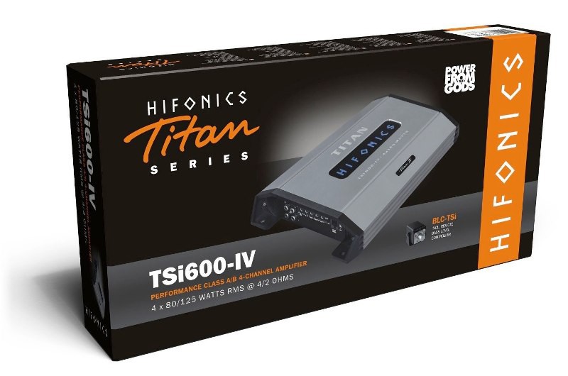 Напълно новата серия усилватели Titan TSi продължава традицията на мощните усилватели Hifonics. Модерен и компактен дизайн и съвсем нови технологии в сравнение с предишните модели. Новата функция Autorun включва усилвателя автоматично при включване на уредбата (не е необходимо свързване на remote кабел). Сигналът може да се свърже както с RCA (cinch) кабели, така и чрез вход за висок ниво. Функцията за автоматично включване позволява този усилвател да бъде свързан към почти всяка система във всеки автомобил и дори като разширение на фабричното озвучаване. Серията Titan TSi представлява топ-клас звук дори за най-взискателните. Заедно с прецизния дизайн на шасито и вграденото лого с двойно подсветяване, всеки усилвател Titan TSi е перфектен!
