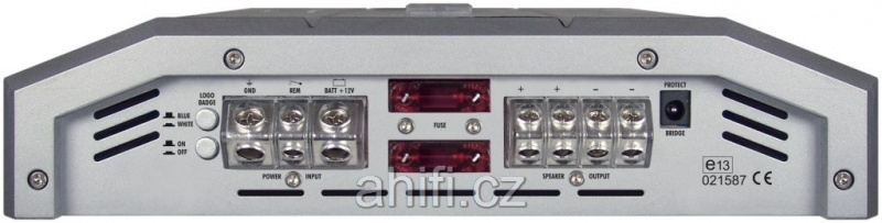 | Брой каналиУсилвателите се разделят на: - моноблокове - 2-канални - 3-канални - 4-канални - 5-канални - 6-канални - многоканални Всеки канал служи за захранване на един високоговорител при коаксиален тип или на една страна, ако става въпрос за компонентни високоговорители. Усилвателите от тип моноблок се използват предимно за субуфери. 2-каналните са подходящи както за субуфери, така и например за преден чифт високоговорители в автомобила. 3-каналните се използват за предни или задни високоговорители + субуфер. 4-каналните се използват за предни + задни високоговорители или 1 чифт високоговорители + субуфер. 5- или 6-каналните обикновено се използват за 2 чифта високоговорители + субуфер. Бриджиране означава свързване на усилвателя в мост, когато се използва + полюс от един канал и - полюс от другия канал. В повечето случаи това е означено на усилвателя като "BRIDGED". | моноблок |