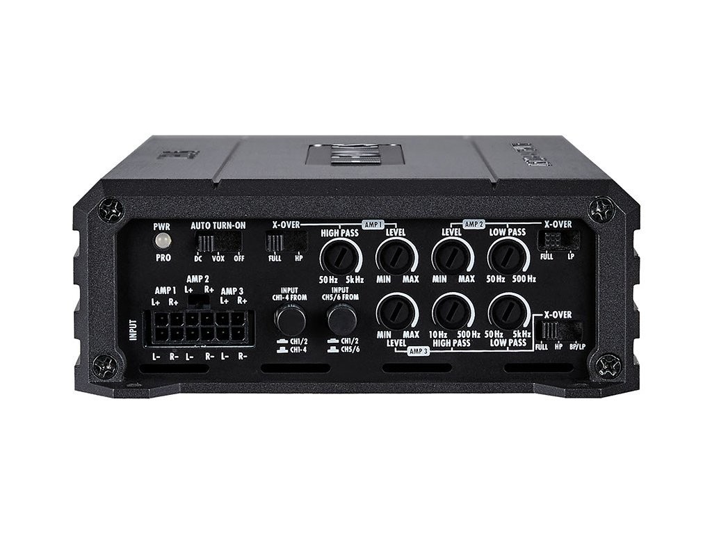 | Брой каналиУсилвателите се разделят на: - моноблокове - 2-канални - 3-канални - 4-канални - 5-канални - 6-канални - многоканални Всеки канал служи за захранване на един високоговорител при коаксиален тип или на една страна, ако става въпрос за компонентни високоговорители. Усилвателите от тип моноблок се използват предимно за субуфери. 2-каналните са подходящи както за субуфери, така и например за преден чифт високоговорители в автомобила. 3-каналните се използват за предни или задни високоговорители + субуфер. 4-каналните се използват за предни + задни високоговорители или 1 чифт високоговорители + субуфер. 5- или 6-каналните обикновено се използват за 2 чифта високоговорители + субуфер. Бриджиране означава свързване на усилвателя в мост, когато се използва + полюс от един канал и - полюс от другия канал. В повечето случаи това е означено на усилвателя като "BRIDGED". | 6 |