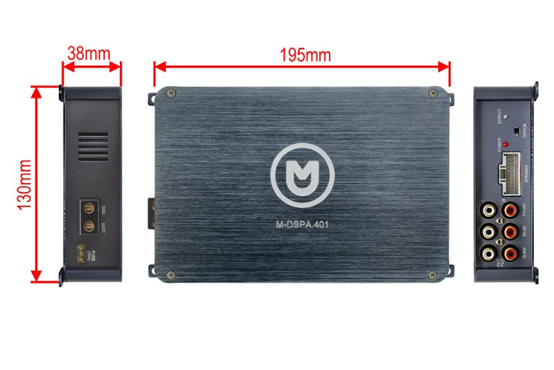 Приложението за управление на M-DSPA402 е безплатно и може да бъде изтеглено от Google Play или Apple Store. След активиране на Bluetooth връзката с M-DSPA402 получавате достъп до всички основни параметри на звуковия процесор, което позволява оптимизация и персонализиране на звуковото възпроизвеждане на цялата система. Приложението ви позволява да запазите до пет собствени настройки. Сърцето на M-DPSA402 е аналогов усилвател и процесор за цифров звук, способен да управлява осем канала. Оборудван е с два A/D превръщача и четири D/A превръщача.Основни характеристики
