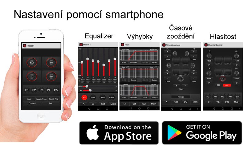 4-канален, 4 x 76 W RMS на 4 Ω, с DSP процесор, управляван чрез приложение за смартфони