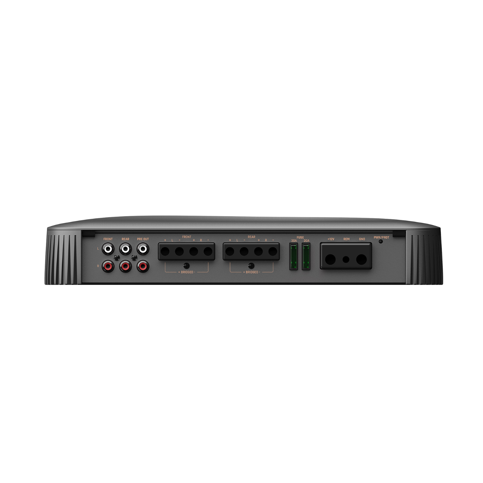 | Брой каналиУсилвателите се разделят на: - моноблокове - 2-канални - 3-канални - 4-канални - 5-канални - 6-канални - многоканални Всеки канал служи за захранване на един високоговорител при коаксиален тип или на една страна, ако става въпрос за компонентни високоговорители. Усилвателите от тип моноблок се използват предимно за субуфери. 2-каналните са подходящи както за субуфери, така и например за преден чифт високоговорители в автомобила. 3-каналните се използват за предни или задни високоговорители + субуфер. 4-каналните се използват за предни + задни високоговорители или 1 чифт високоговорители + субуфер. 5- или 6-каналните обикновено се използват за 2 чифта високоговорители + субуфер. Бриджиране означава свързване на усилвателя в мост, когато се използва + полюс от един канал и - полюс от другия канал. В повечето случаи това е означено на усилвателя като "BRIDGED". | 4/3/2 |