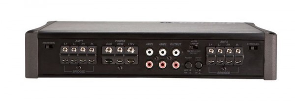 2-канален, 2 x 285 / 1 x 940 при 4 Ω / 2 x 470 / 1 x 1500 W RMS при 2 Ω, клас AB, вход с високо ниво