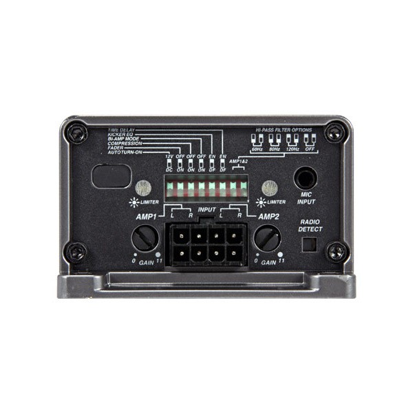 В новите иновативни усилватели KEY от KICKER® е вграден мощен DSP чип, който осигурява значително подобрение на звука по отношение на реалното слушане и сцената във всеки автомобил. Просто натиснете превключвателя за автоматична калибрация и микрофонът ще се погрижи за останалото. Това, което обикновено отнема часове професионална настройка, може да се изпълни за няколко минути. Мощният 40-ленточен еквалайзер и DSP кросоувърите с 24 dB подобряват тоналността на всеки говорител. Освен невероятно добро качество на звука, усилвателите могат да бъдат инсталирани почти навсякъде - зад радиото, под седалката или в багажника.Ключови характеристики на micro усилвателя Kicker KEY180.4PP