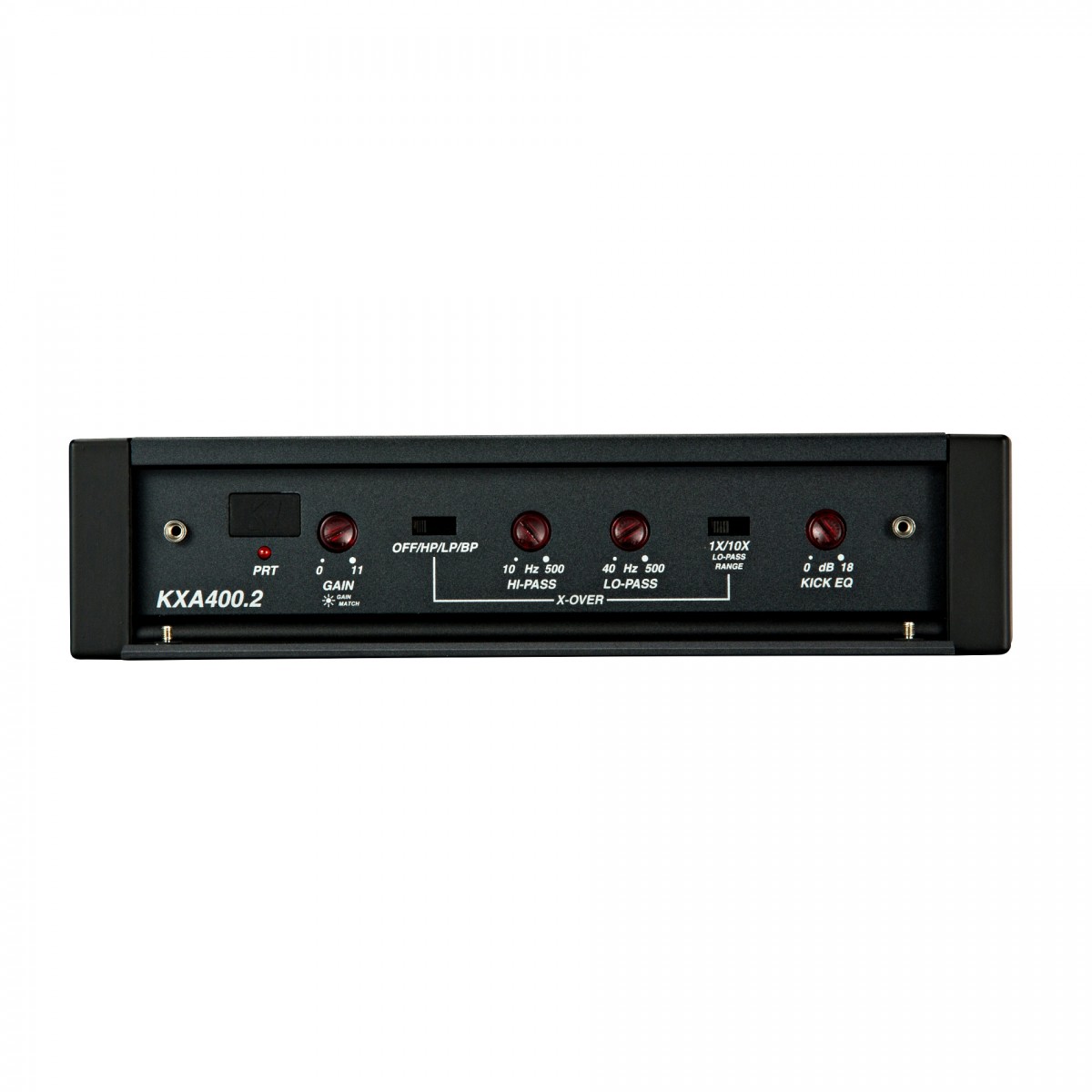 Този двуканален усилвател KXA400.2 е направен за качествено възпроизвеждане на звук в малък и мощен корпус. Стандарт за всеки усилвател KX, KickEQ+™ предоставя огромни 18 dB регулируемо подсилване на басите, докато мощният кросоувър 24 dB ви дава контрола, необходим за да настроите системата си до съвършенство.Ключови характеристики на усилвателя Kicker KXA400.2