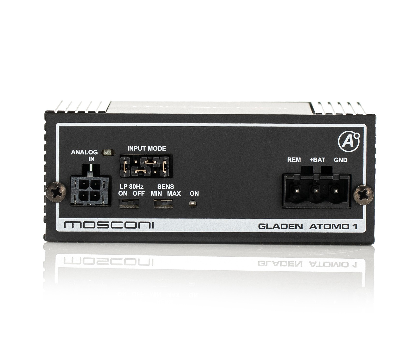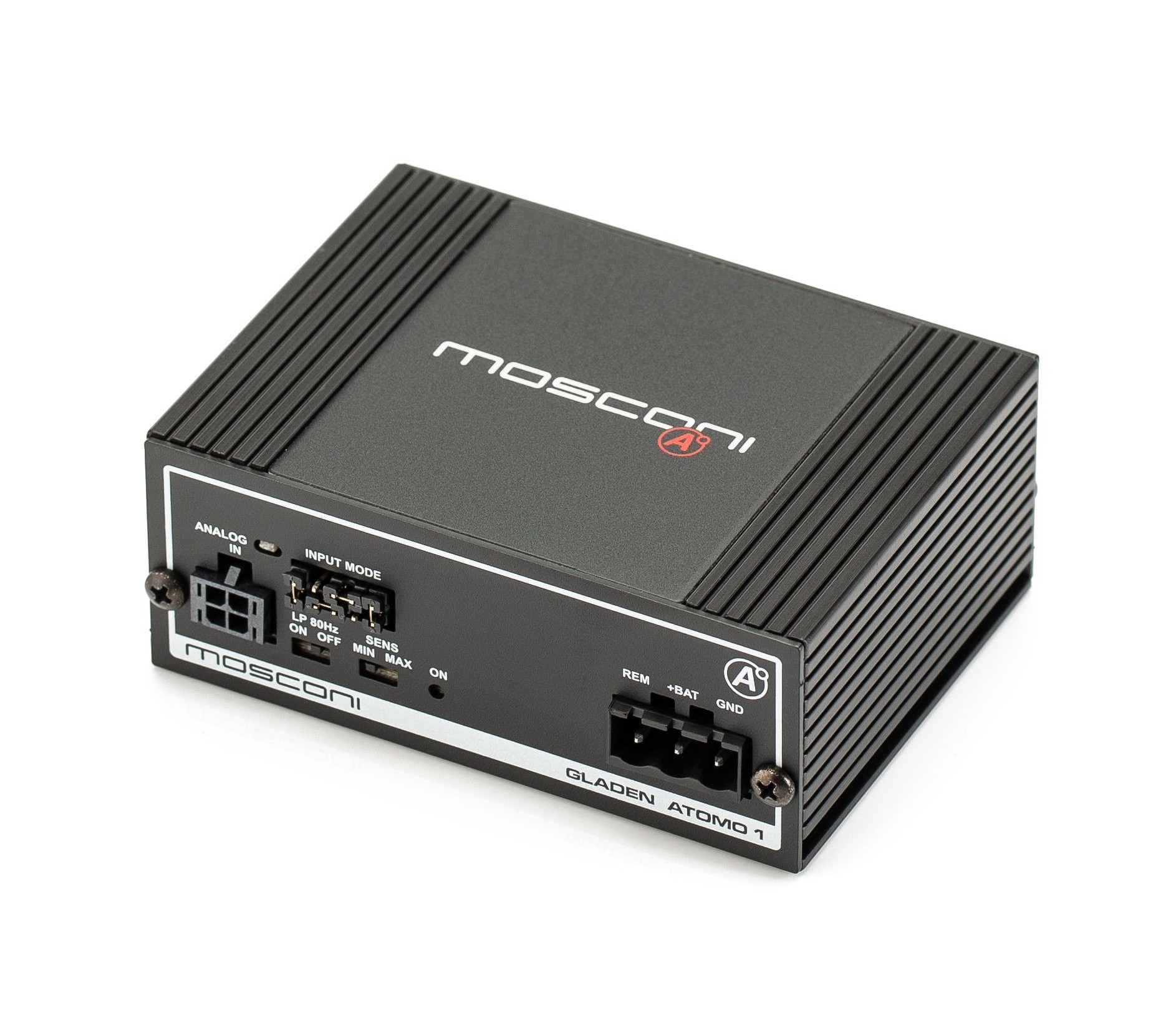 Изключително компактен 1-канален усилвател - Atomo 1. В света на автомобилните аудиосистеми, където през 2021 г. „размерът има значение“ повече от когато и да е, Mosconi Gladen ATOMO 1 има какво да каже. Усилвател клас D с мощност 250 W RMS на 4 ома използва здраво алуминиево шаси с забележително малки размери, което означава, че може да се скрие практически навсякъде. В комбинация с усилвателя ATOMO 2 от Mosconi Gladen и с ATOMO 4|6 DSP за управление на сигнала позволява създаването на малка, но мощна система.Основни характеристики на усилвателя Mosconi Gladen ATOMO 1