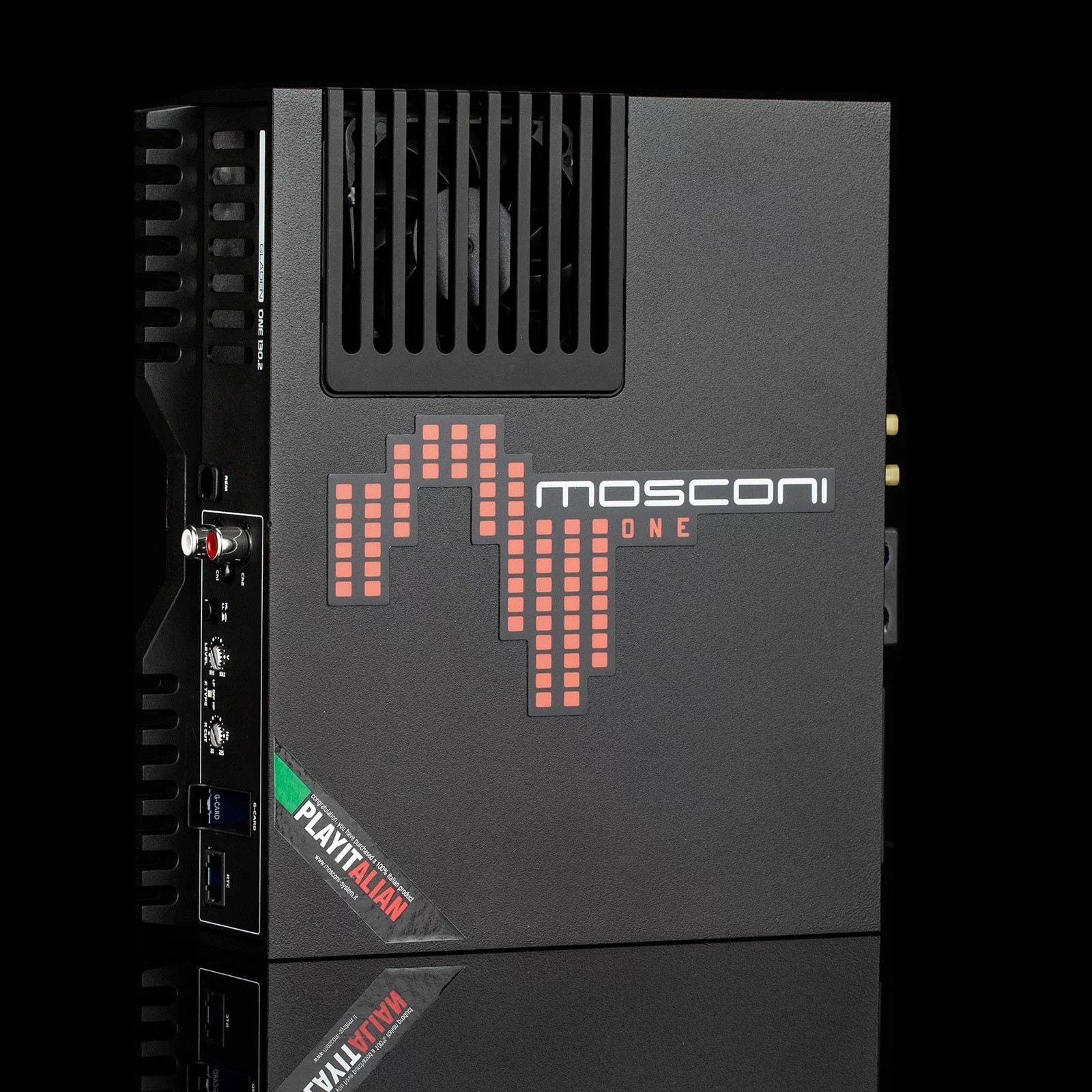 MOSCONI ONE 130.2 е универсален двуканален висококачествен усилвател в технологията клас AB. ONE 130.2 е идеален усилвател за високоговорителни системи или средно големи субуфери. Той е проектиран като стерео усилвател, но може да бъде превключен и в моно режим и тогава доставя повече от двукратно увеличена мощност. Този усилвател е мощен и благодарение на аналоговата технология Full Mosfet има отлични звукови характеристики. Вграденият висококачествен High/Low адаптер ще ви гарантира безпроблемно свързване към всички фабрични автомагнитоли. Серията GLADEN ONE е бестселър и гръбнакът на много пълни системи. Целта на разработката беше да се създадат неусложнени, универсални усилватели с много добър звук и динамика. Със своите гъвкави входове серията GLADEN ONE също осигурява начална искра за hi-fi при фабричните главни устройства.Основни характеристики на усилвателя Mosconi Gladen ONE 130.2