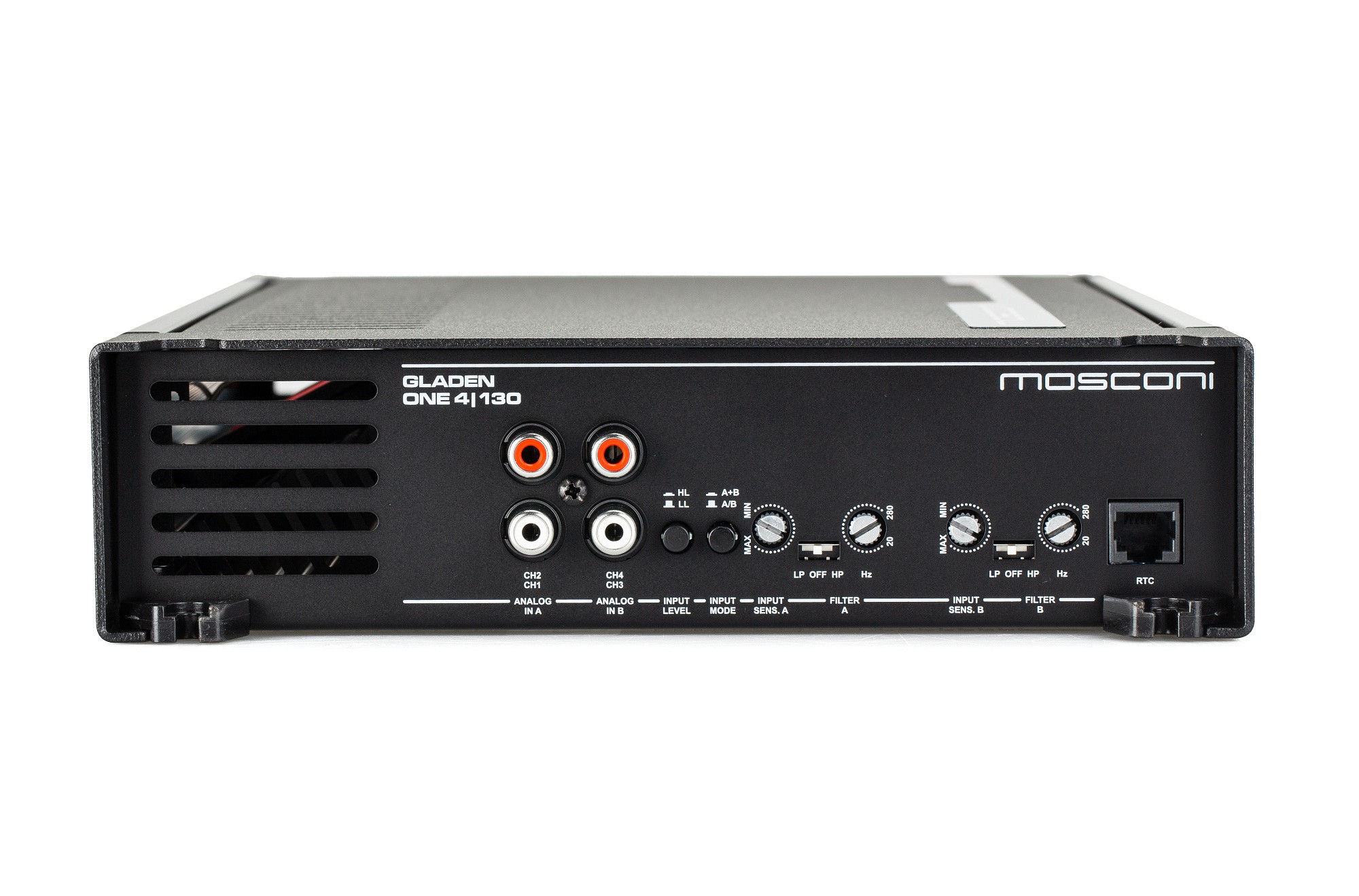 MOSCONI ONE 4|130 е универсален 4-канален висококачествен усилвател в технологията на клас AB. Това е идеален усилвател за говорителни системи или средно големи субуфъри. ONE 4|130 е проектиран като двойно стерео решение, но може да работи и в три- или двуканален режим. Този усилвател е мощен и благодарение на аналоговата Full Mosfet технология притежава отлични звукови характеристики. Серията GLADEN ONE е бестселър и гръбнакът на много пълни системи. Целта на разработката беше да се създадат неусложнени, универсални усилватели с много добро звучене и динамика. С гъвкавите си входове серията GLADEN ONE осигурява и началния импулс за hi‑fi при заводските главни устройства.Основни характеристики на усилвателя Mosconi Gladen ONE 4|130