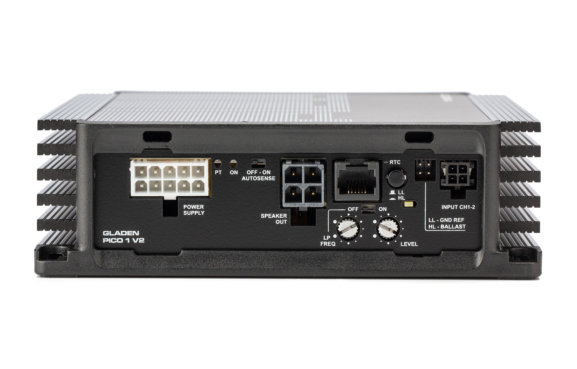 С модела PICO 1 v2 Mosconi представя второто поколение PICO DSP усилватели. Освен подобрената свързаност новият PICO се отличава с повишена звукова мощност и по-добра ефективност. Всички конектори сега са разположени от едната страна на усилвателя, а съответните контролни превключватели, необходими за експлоатация в съвременните автомобили, са разположени под магнитен капак. Освен това всички входове вече могат да работят както на високо, така и на ниско ниво.Основни характеристики