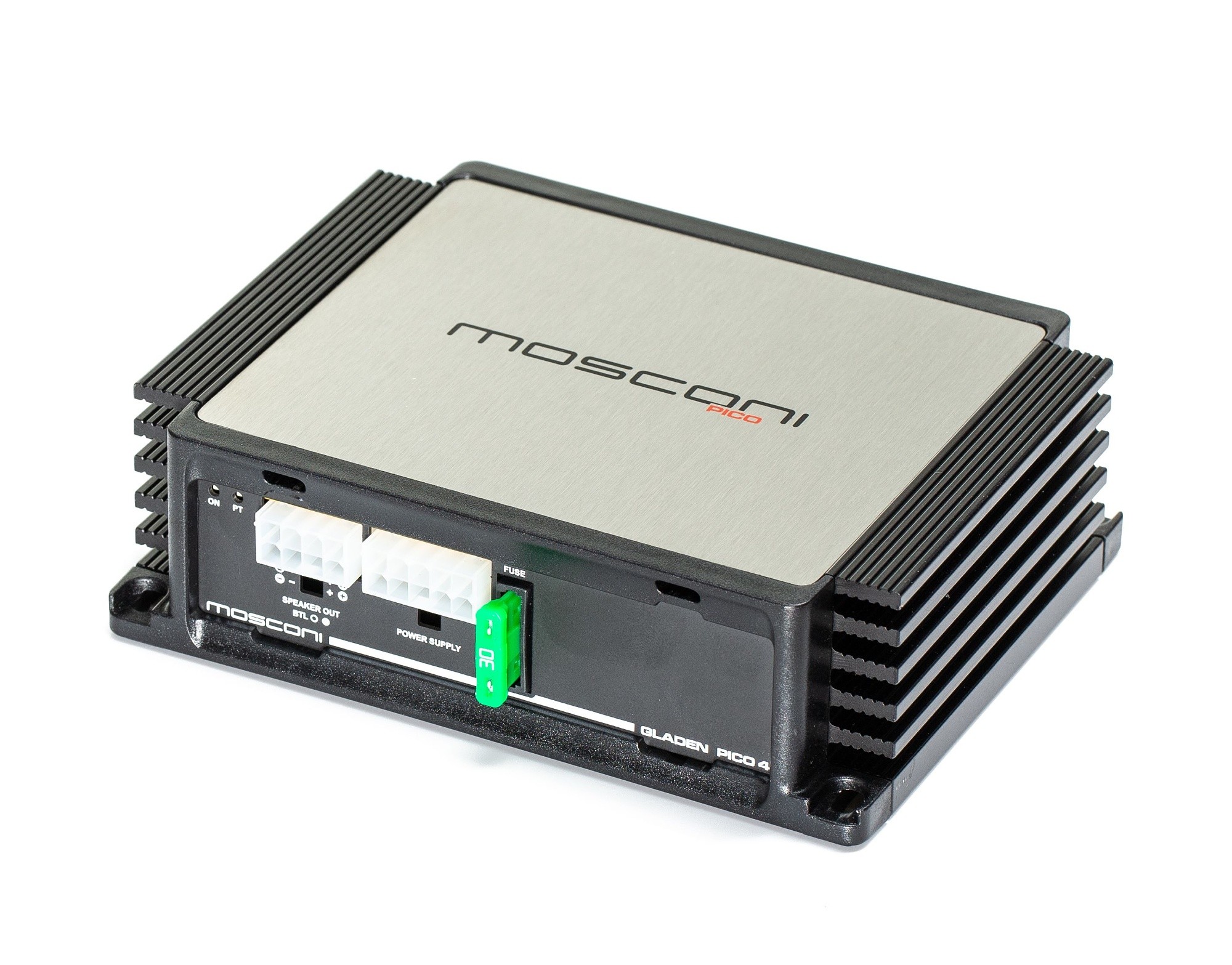 Mosconi Gladen PICO 2.0 стана през 2015 г. малка сензация. Поради това в Gladen решиха да разширят значително тази серия с още модели усилватели Mosconi Gladen PICO. В края на 2019 г. на пазара излиза новият микро усилвател PICO 4. Благодарение на размерите му 150 x 115 x 46 mm, не е проблем да се намери подходящо място в автомобила, където да се скрие и да не се вижда. Усилвателите Mosconi Pico въплъщават бъдещето на автомобилното hifi. Компактните корпуси комбинират най-съвременни високоскоростни дигитални усилватели, интелигентни захранвания и иновативни DSP функции. Резултатът е висока енергийна ефективност, която е основно изискване за модерните и електрическите превозни средства.Основни характеристики на усилвателя Mosconi Gladen PICO 4
