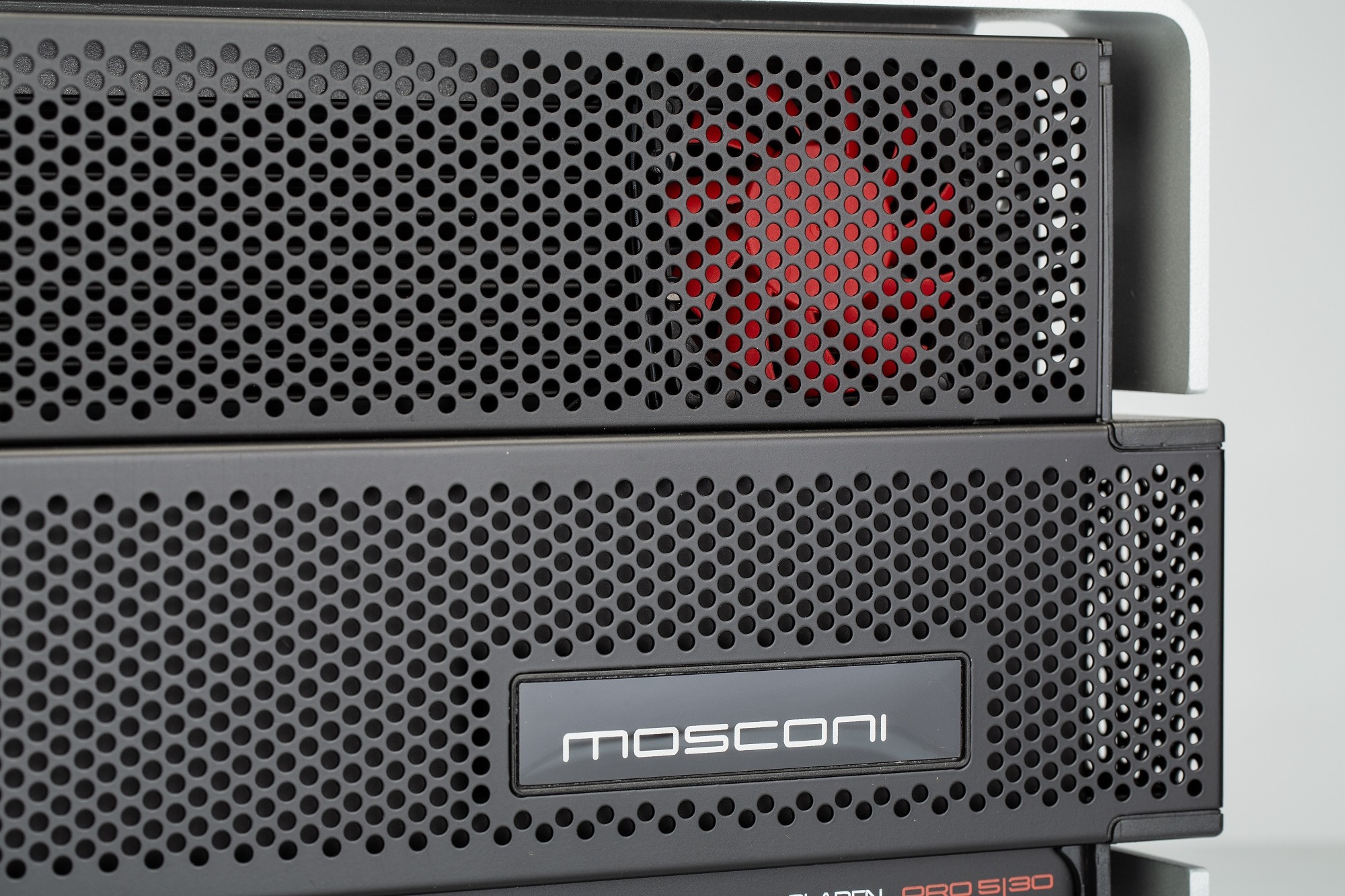 MOSCONI PRO 5|30 още с дизайна си подсказва стремежа към high-end: с заоблени алуминиеви ръбове и контрастна вложка от черен перфориращ метал с подсветено лого усилвателят изглежда много елегантно. Mosconi Pro 5|30 е хибриден усилвател в своя клас. С него могат да се реализират обширни системни конфигурации. Благодарение на асиметричното разпределение на мощността в съчетание с дигитален звуков процесор той е създаден за активна работа. Вторият по ред най-висок клас усилватели PRO от Mosconi съдържа най-съвременни технологии и първокласни компоненти за най-високо качество на звука. Усилвателите от моделната серия PRO са резултат от стремежа на инженерите в Mosconi да създадат истински high-end продукти с ултимативно качество на звука, което почти се доближава до най-високата серия Zero. Целта на разработката не е била нищо по-малко от първокласна музикалност, вярно звучене с надстандартна мощност и максимално удоволствие от слушането на вашата любима музика. Именно затова в Mosconi при многоканалните решения заложиха на аналоговия клас AB, който и в днешно време, изпълнен с дигитални усилватели, все още изпъква с естественото и "топло" си звучене. Предложението от общо пет аналогови усилвателя е допълнено от мощен моноблок за висококласни субуфери. Гъвкавото разпределение на енергията, високата мощност и отличният звук правят усилвателите Mosconi серия PRO оптимални партньори за активни системни конфигурации. Модерният дизайн с всички контроли и конектори от едната страна както и вграден вентилатор позволяват гъвкав монтаж дори в затворени пространства.