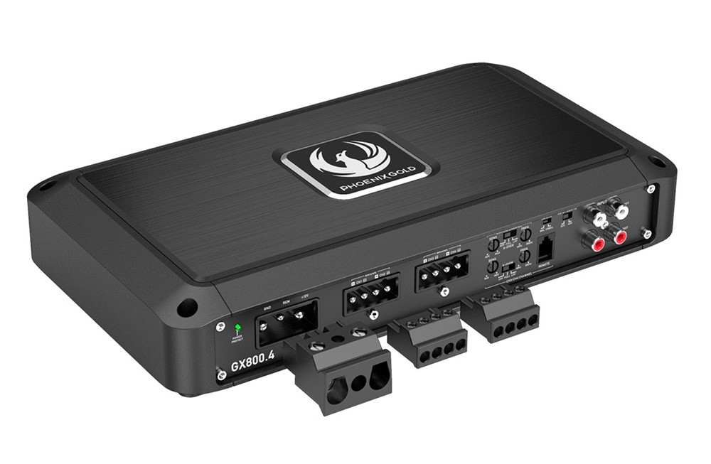 Phoenix Gold GX800.4 е първокласен 4-канален усилвател от втората по височина серия GX на Phoenix Gold. Усилвателите от серия GX предлагат отличен звук, висока мощност и, в сравнение с най-високата серия ZQ, компактни размери благодарение на най-съвременната дигитална технология. Инженерите на Phoenix Gold са се стремили при серия GX да съчетаят звуковите предимства на своите аудиофилски аналогови усилватели с предимствата на цифровите. В луксозно шаси от четкан алуминий ще намерите прецизни компоненти и операционни усилватели за най-високо качество на звука и ниски изкривявания. Голямо внимание е отделено и на отвеждането на топлината и осигуряване на оптимална температура вътре в усилвателя благодарение на патентованата технология BFD (Balanced Flow Dissipation). Усилвателите от серия GX благодарение на това предоставят високи мощности, минимални изкривявания и в същото време много висока ефективност без прегряване. Това позволява универсален монтаж дори в затворени пространства, където аналоговите усилватели биха могли да имат проблеми. Лесният и бърз монтаж се осигурява не само от едностранния панел за управление и свързване на усилвателя, но и от патентованите бързи съединители за висока токова пропускателна способност и надеждност.