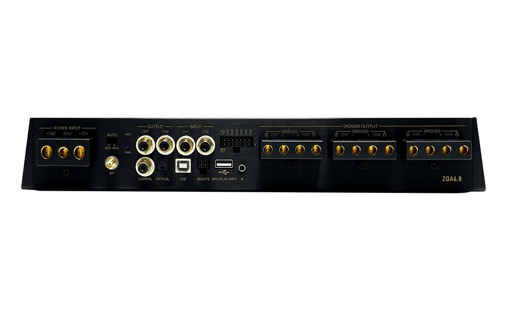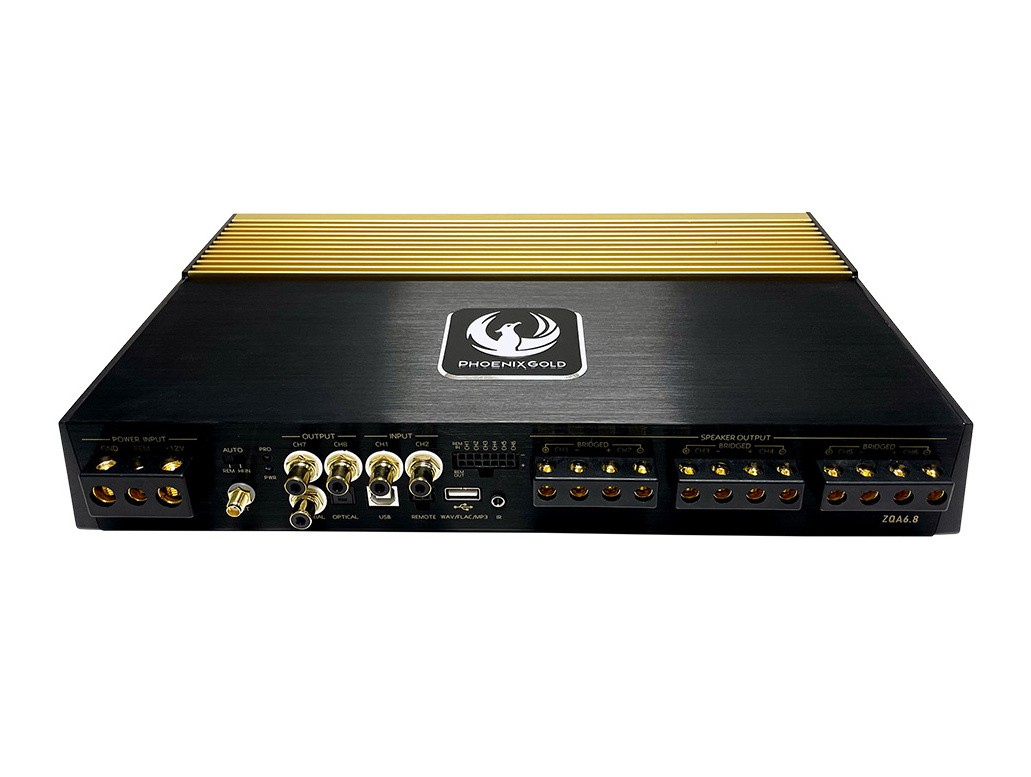 Phoenix Gold ZQA6.8 е един от върховите усилватели клас A/B от най-високата моделна серия ZQ на Phoenix Gold. Усилвателят осигурява впечатляващи звукови характеристики, висока мощност, отличен контрол над говорителите и универсални възможности за инсталация благодарение на компактните си размери. Перфектната изработка, изискани материали и изключителният дизайн в черно-златно изпълнение допълнително подчертават качествата на този усилвател. Финалният акцент е осемканалният интегриран DSP процесор за неограничени възможности за настройване на звука. Висшата серия ZQ от Phoenix Gold включва няколко аналогови усилвателя клас A/B, които обединява вярно звучене без компромиси и дизайн, представящ миналото, настоящето и бъдещето на Phoenix Gold. Дългоочакваните усилватели ZQ представляват възраждане на оригиналните ценности на Phoenix Gold и предлагат водещи технологии за аудиофилско звучене във вашия автомобил. Двоен източник на захранване на усилвателя заедно с high-end немски и японски кондензатори Wima и Nichicon гарантират ефективно и непрекъснато захранване. Високопроизводителните потенциометри от най-високо качество подпомагат мощността, докато екранираните сърцевини на трансформаторите, произведени в Германия, осигуряват чисто подаване на енергия през целия усилвател. Можете да разчитате на отлична свързаност благодарение на клемите позлатени с 24-каратово злато, които украсяват и печатните платки. Двухцветният екструдиран радиатор с оптимизация за топлопренос гарантира оптимална температура дори при интензивна работа. Всички тези технологични предимства допринесоха за създаването на уникална серия sound quality усилватели, които ще спечелят сърцата на много аудиофили.