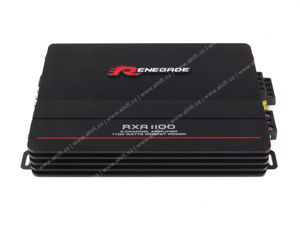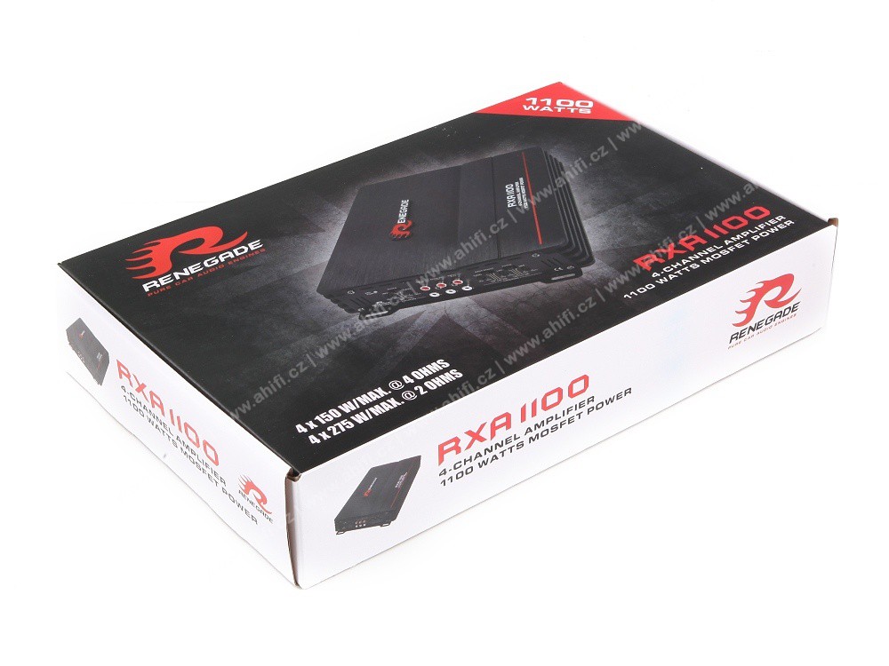 Renegade RXA1100 е четириканален усилвател, проектиран за ентусиасти на автозвука и за всеки, който иска да издигне звука в автомобила си на по-високо ниво. Този усилвател осигурява чист, динамичен и стабилен мощност за два чифта говорители или два субуфъра, което позволява по-силен и по-качествен звук с минимални изкривявания. Конструкцията на усилвателя се отличава с надеждно изпълнение, ефективно охлаждане и възможност за гъвкави връзки в различни аудиосистеми. Renegade RXA1100 е идеален избор за тези, които искат да подобрят производителността на OEM аудиосистемата без усложнения и да постигнат балансиран и чист звук във всички честотни диапазони.