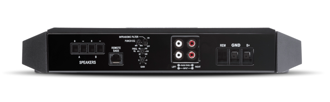 | Дистанционно управление, включено в комплектаНякои модели усилватели имат в комплекта и кабелни дистанционни управления, които от едната страна се включват в усилвателя, а от другата имате потенциометър, който можете да поставите където пожелаете в кабината. Обичайното място за поставяне на дистанционното е под волана. Предимството е регулирането на мощността, съответно на силата на звука, в зависимост от условията на шофиране и настроението на пътниците в автомобила. | Не |